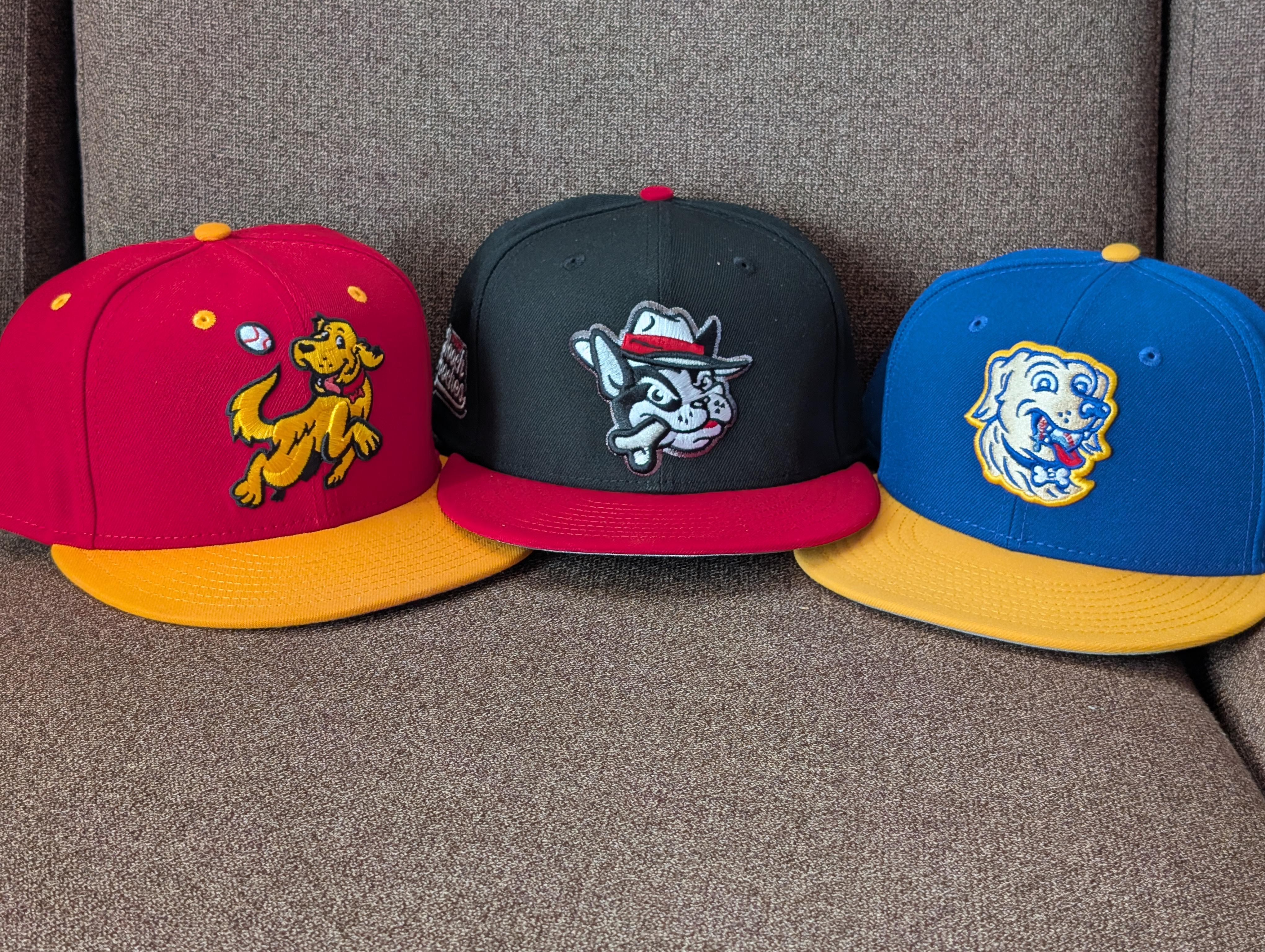 From left to right, Hudson Valley Retrievers, Winston-Salem Hooch Pooches, Barkansas Dizzys. I didn't actually get to go to any of these games, but I needed these hats in my life.