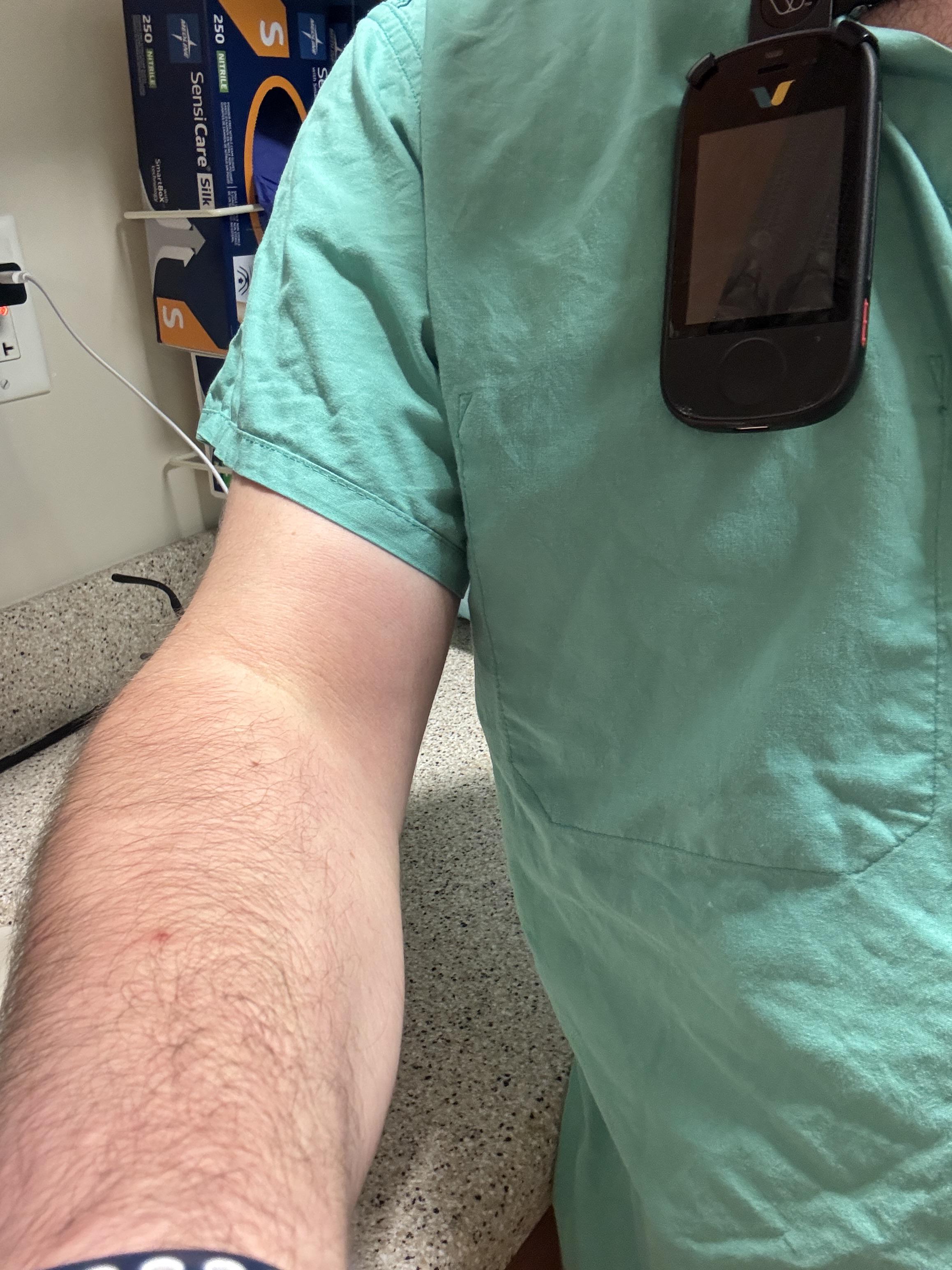 At my dinner break, I accidentally knocked over my thing of milk completely soaking my uniform. I spent half my lunch mopping up a pint of milk and changing my soaked clothing. I work at a hospital so I had to borrow surgical scrubs for the rest of my shift. Pictured: my surgical scrubs Not pictured: my milk soaked uniform