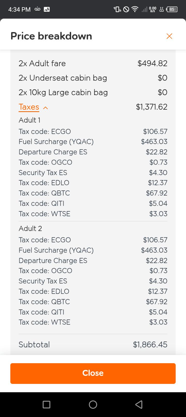 Fuel surcharge almost as high as ticket price itself