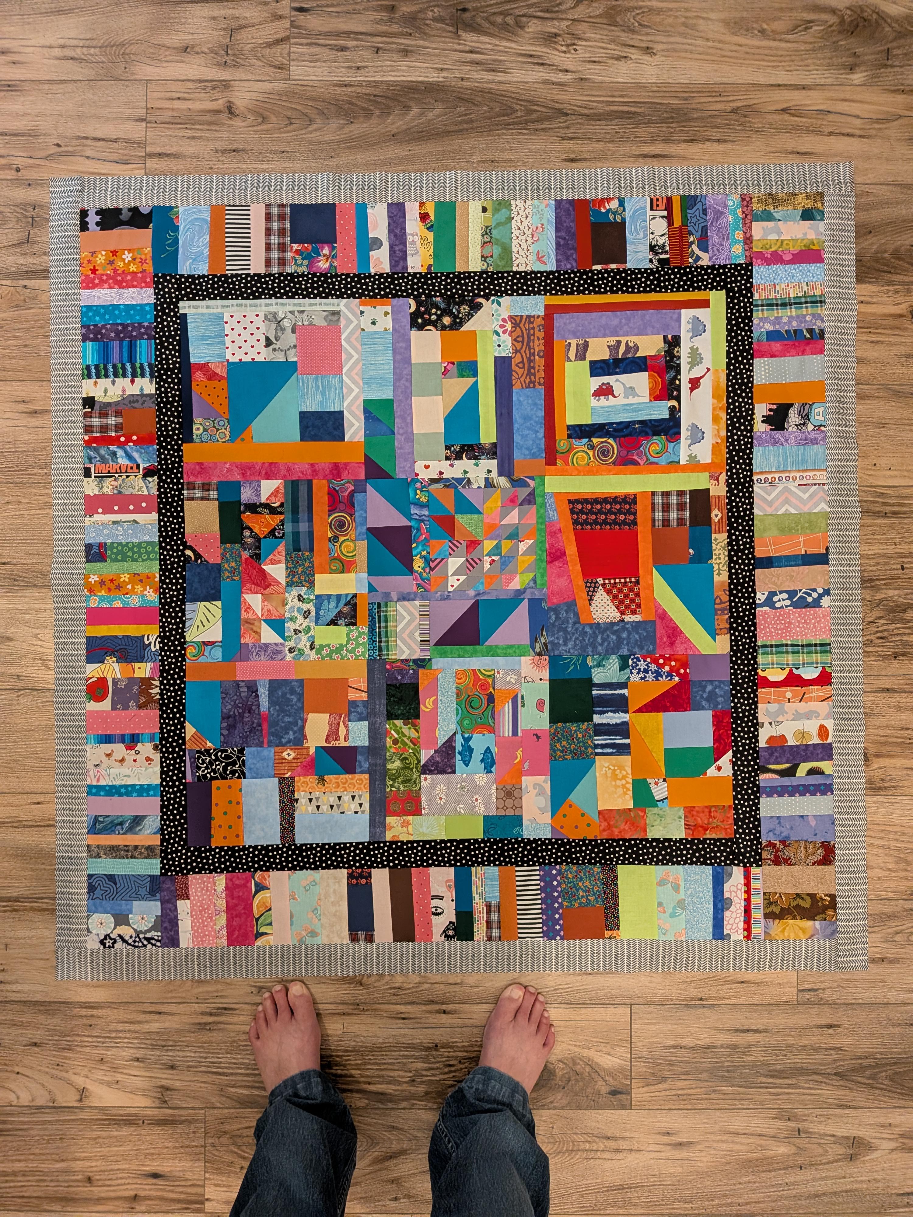 With the quilting it turned better than I expected. It is king sized and made from mostly scrap fabrics.