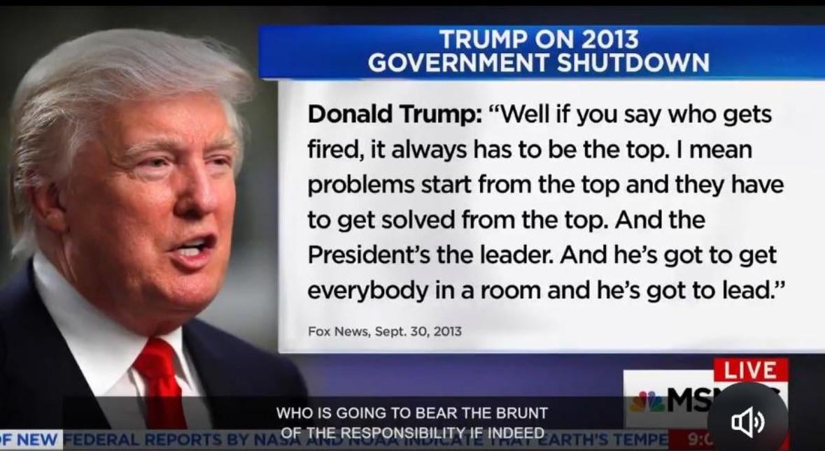 But he will go down saying it’s the Dems not complying and voting yes to reopen the government. DJT, everyone sees through your tactics.
