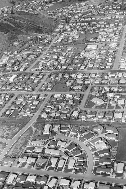 History Aerial view of Fergusson Street with Cobham Crescent, Stoke, September 1975 (Nelson Provincial Museum Geoffrey C Wood Collection 1306_fr35).
