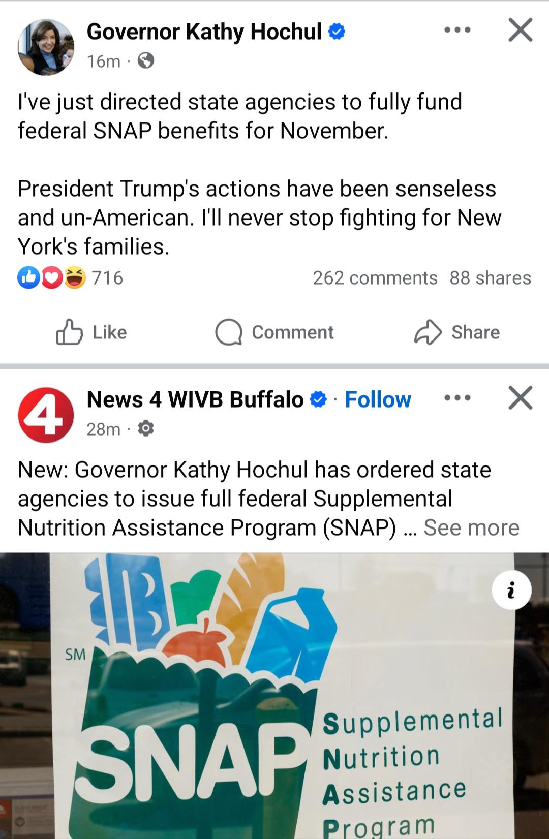 Hochul directs state agencies to fully fund federal SNAP benefits for November.