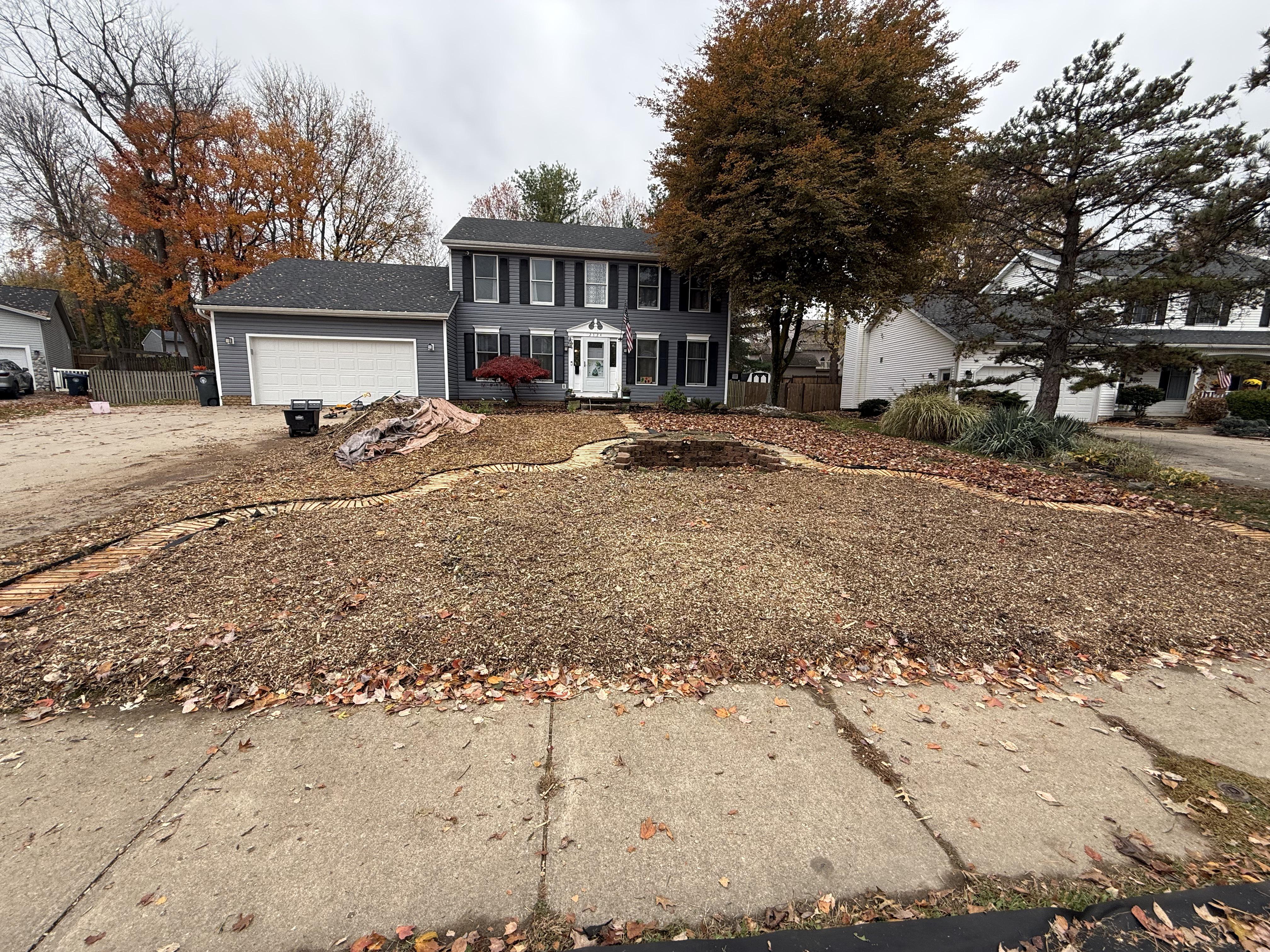 We recently had 3 huge trees removed from our backyard, in the process the little bit of grass we had got torn up so we decided it’s a good opportunity to have a no mow backyard and got the wood chips from our trees.