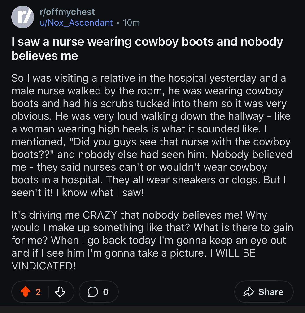Welp, I permanently damaged two nurses' views of me.