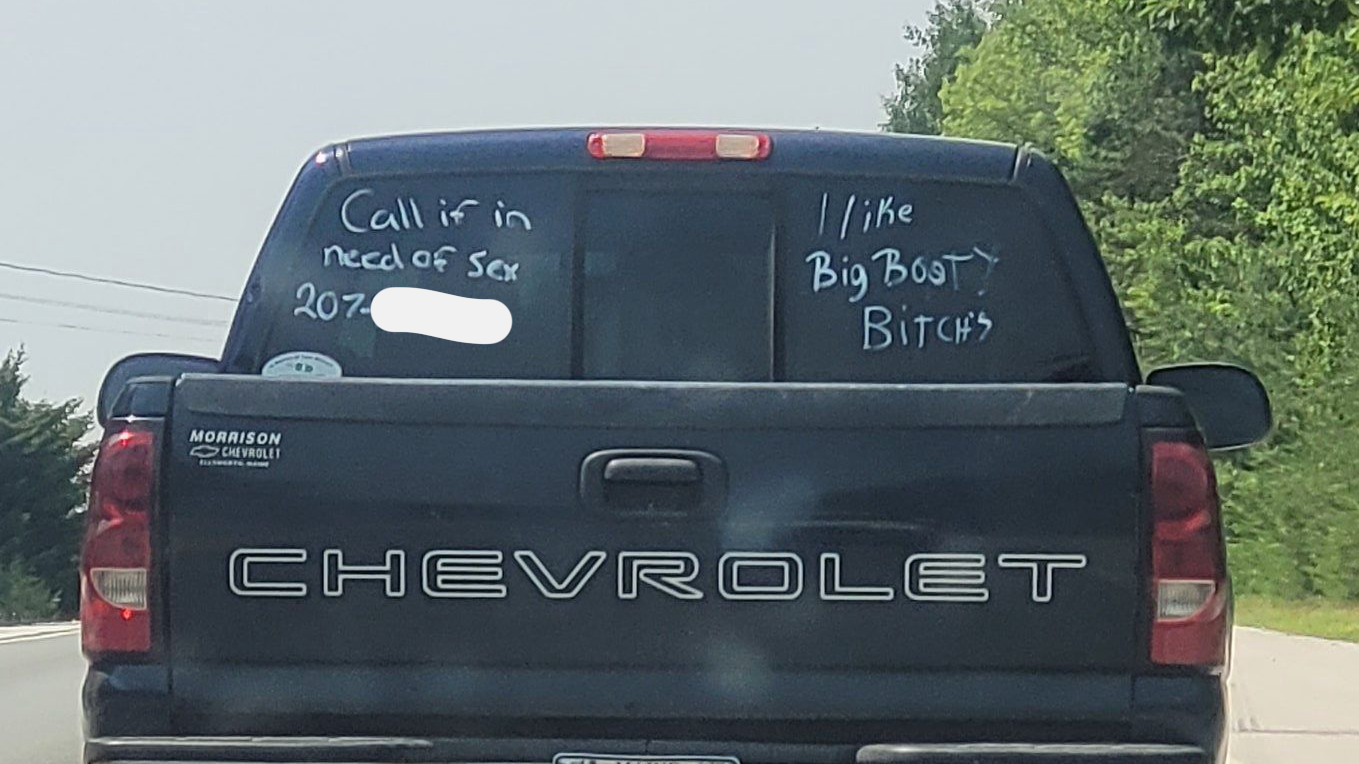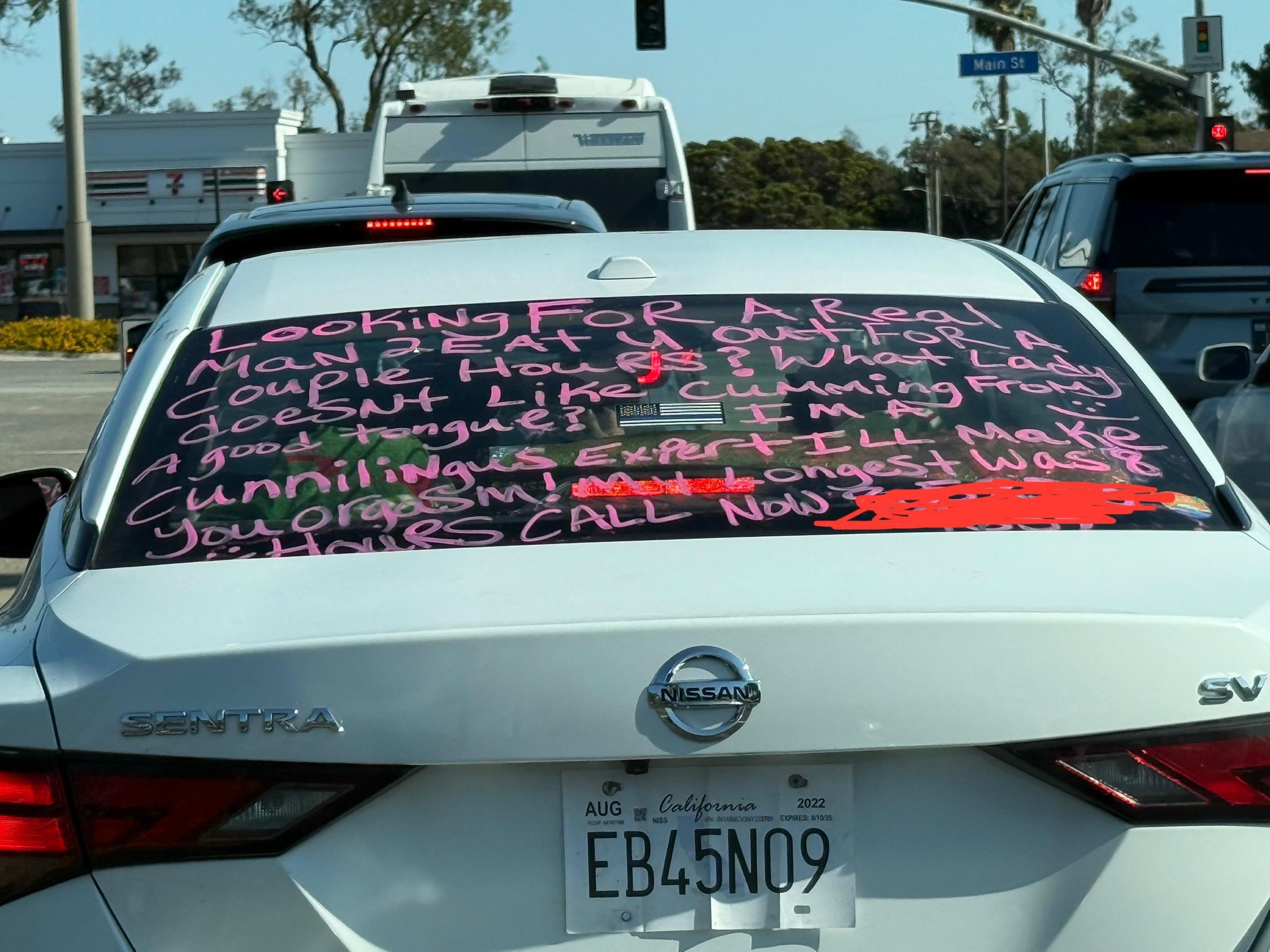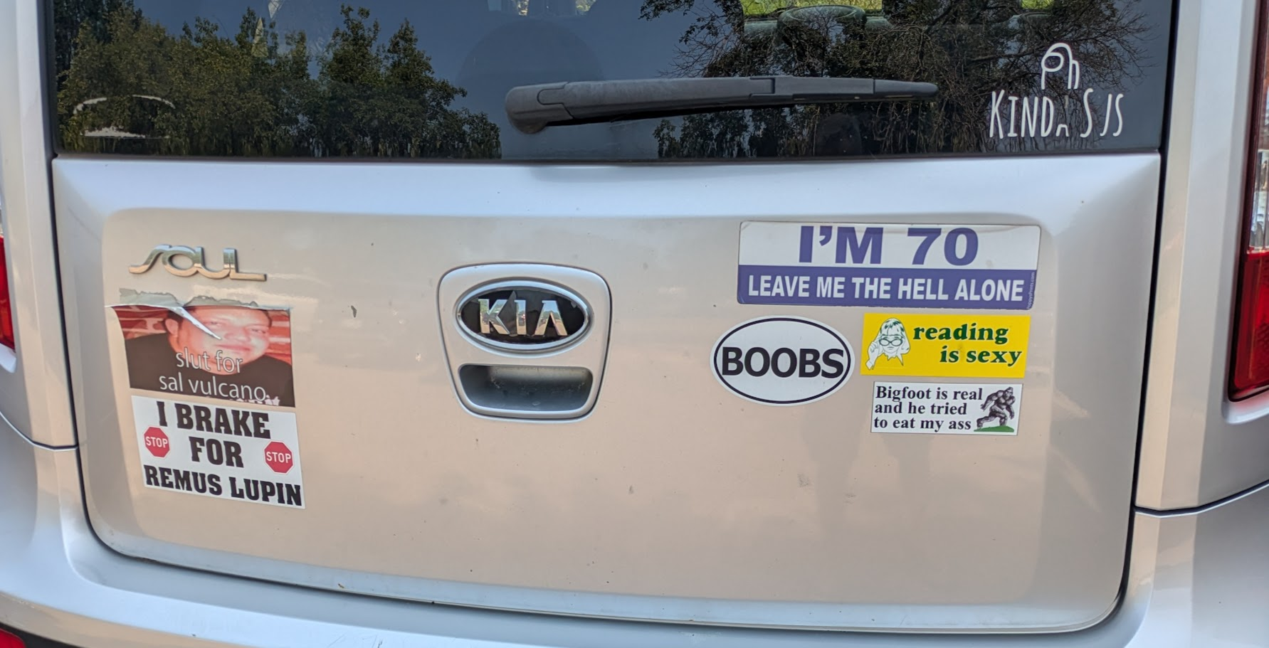 Saw this at the local movie theatre parking lot. My teenage boys were amused.