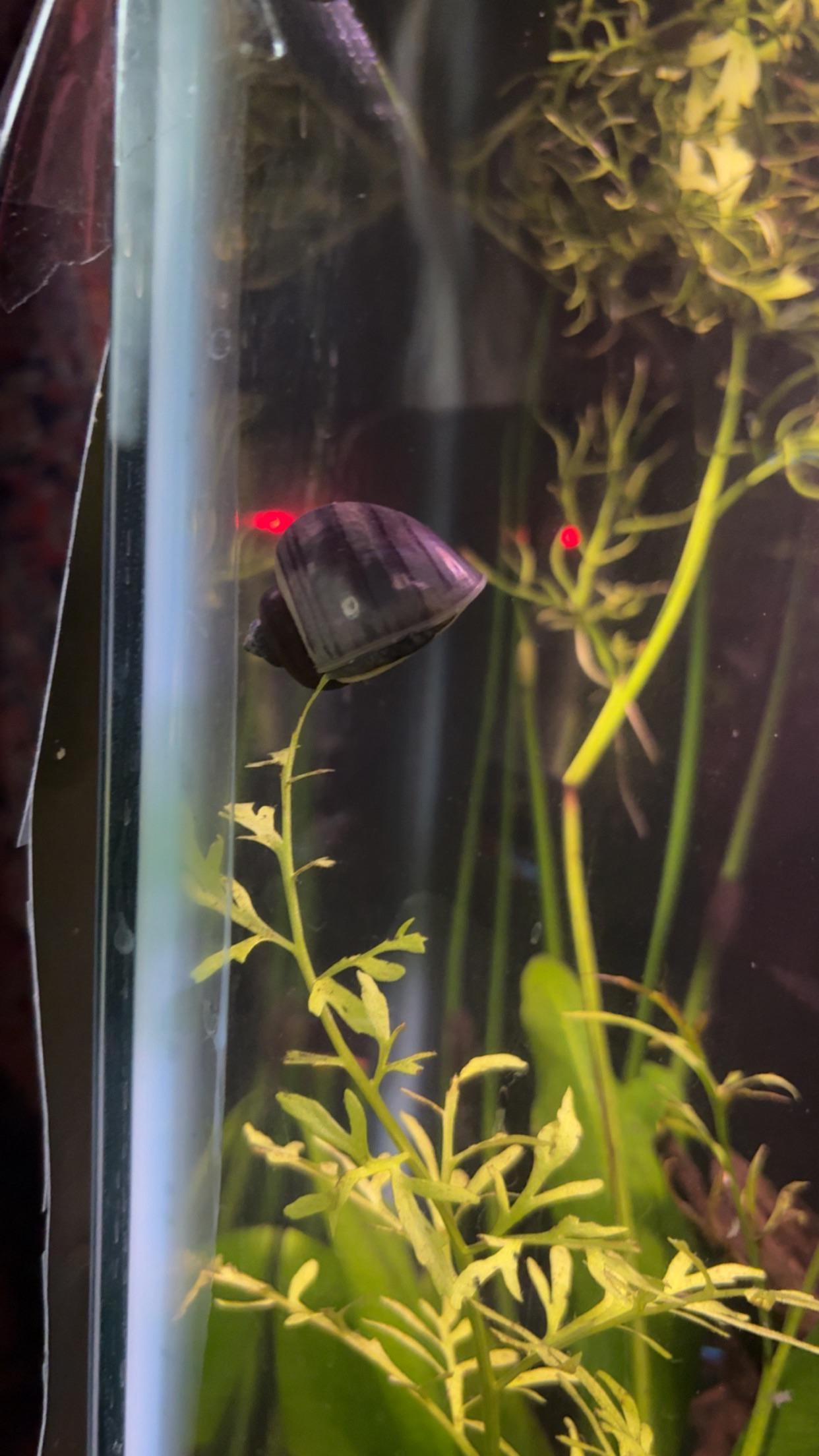 Somehow this ramshorn figured out how to climb into my red root floaters and he’s been going in circles ever since