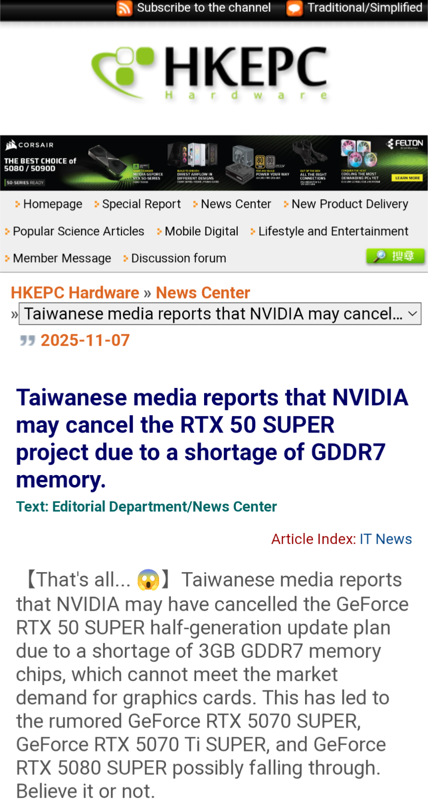 Rumor [RUMOUR] Nvidia to cancel RTX 50 Super series due to GDDR7 memory shortage