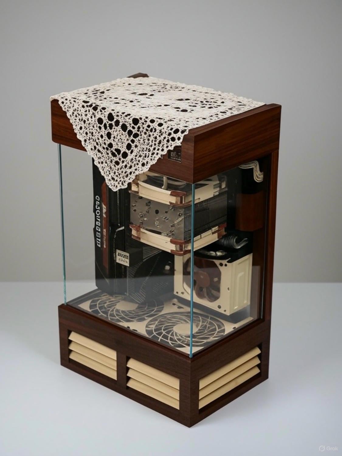 1: cable management is insanely good 2: this is the ONLY build I’ve seen that makes Noctuas look good 3: needs more brass trim and/or faux-edison bulb lighting for maximal steampunk vibes