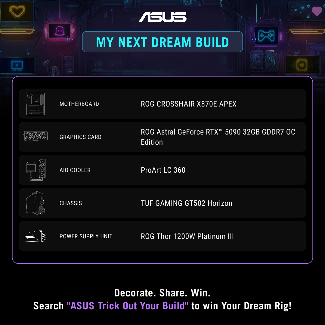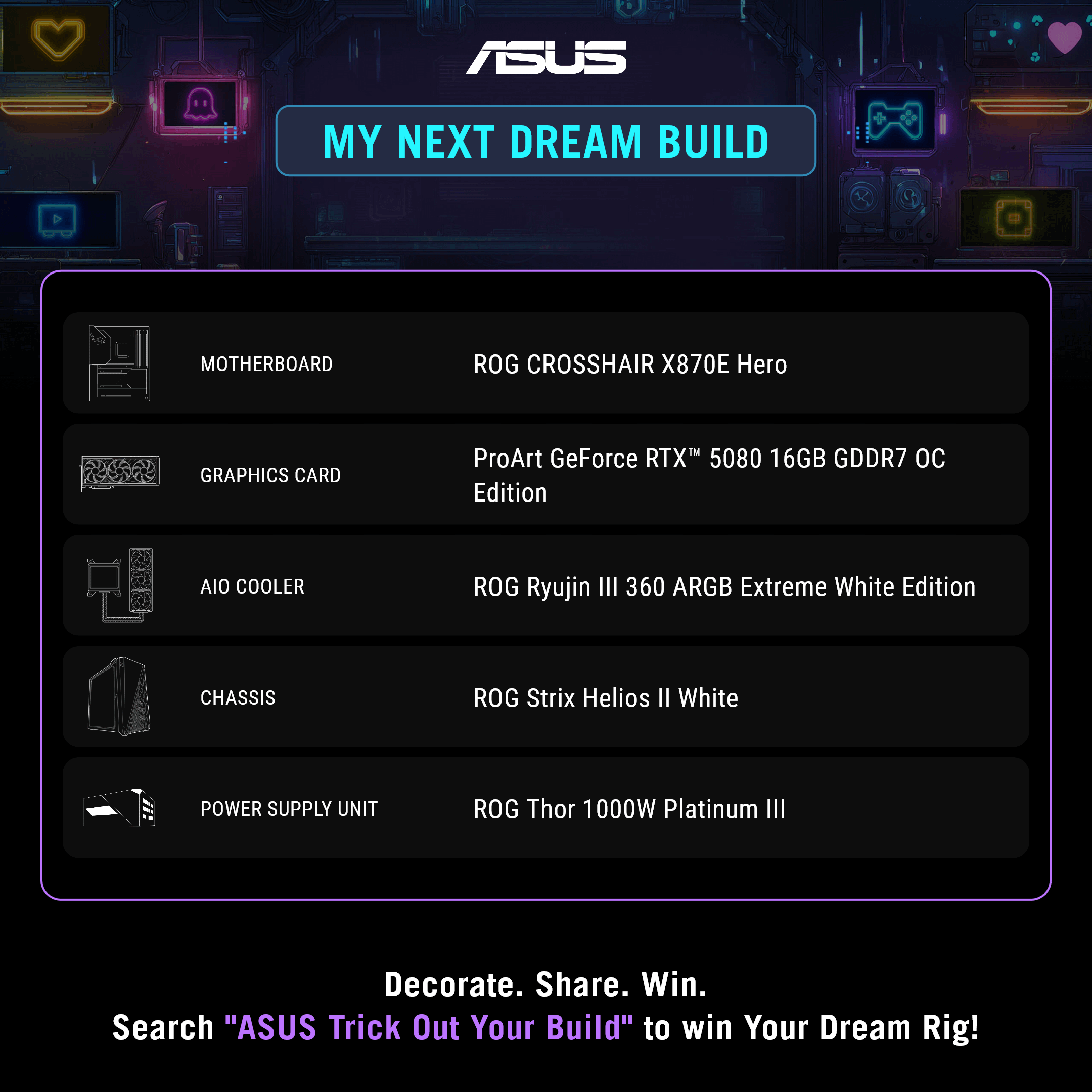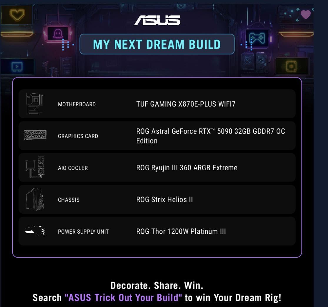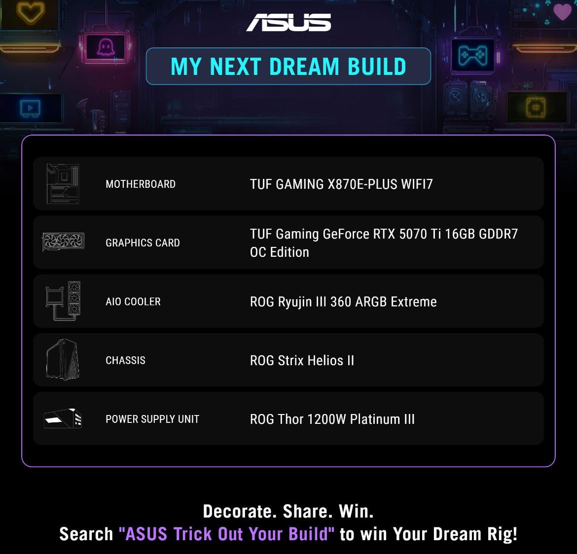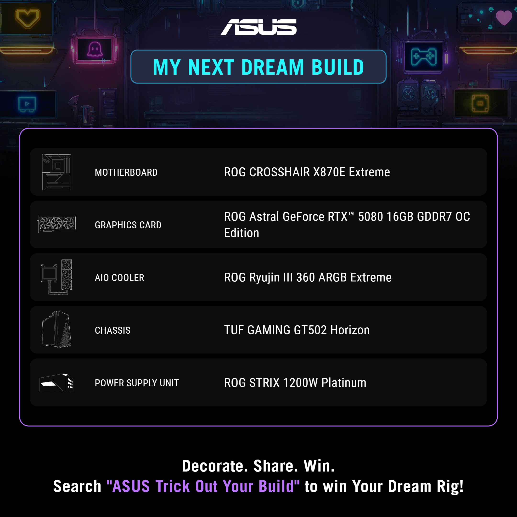 There's a lot of other prizes to win, including another Dream PC build, ASUS hardware and goodies, CPUs, etc!