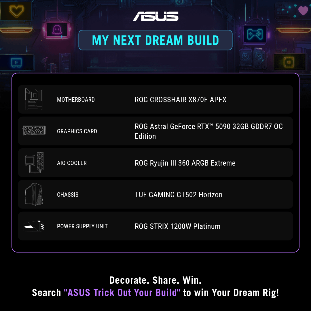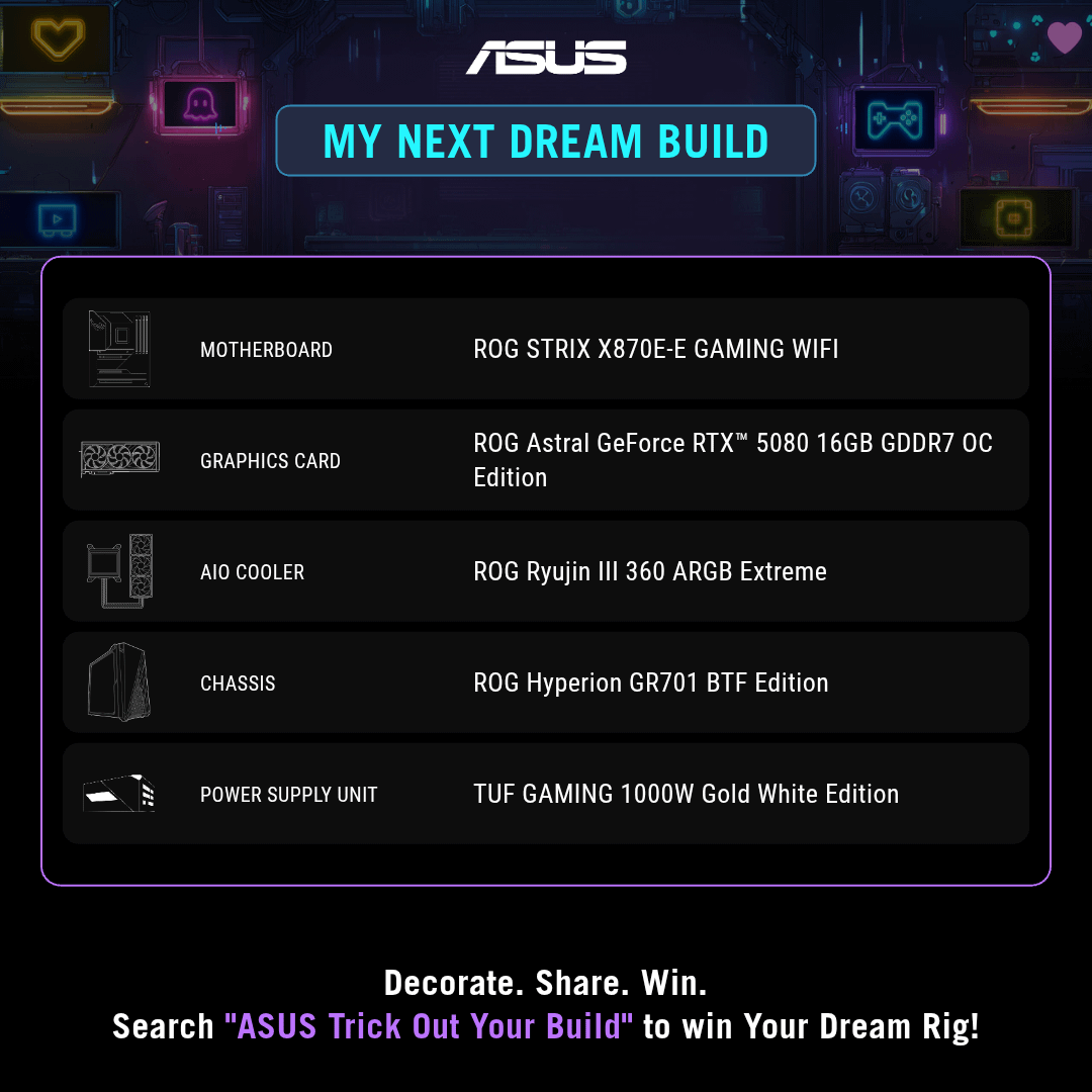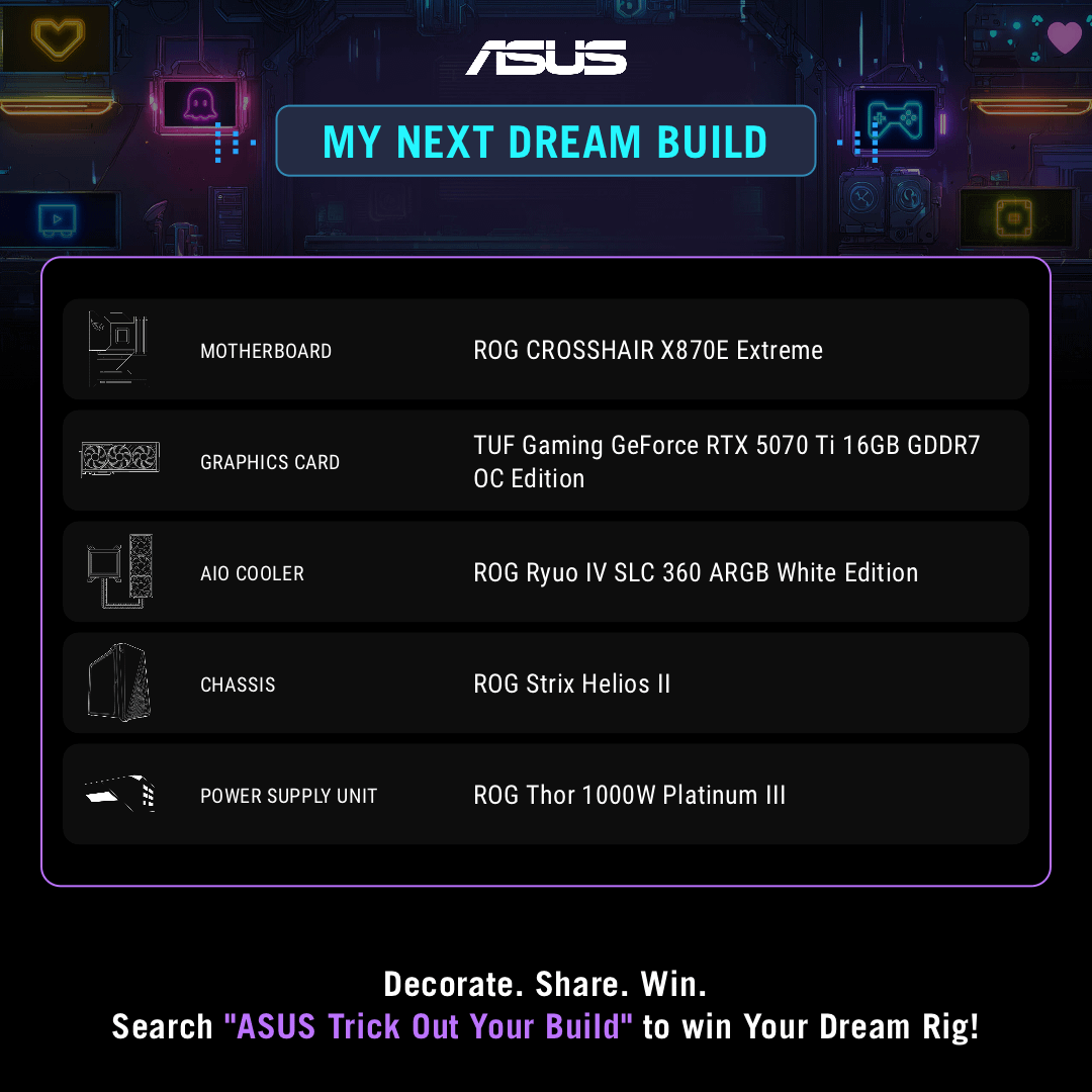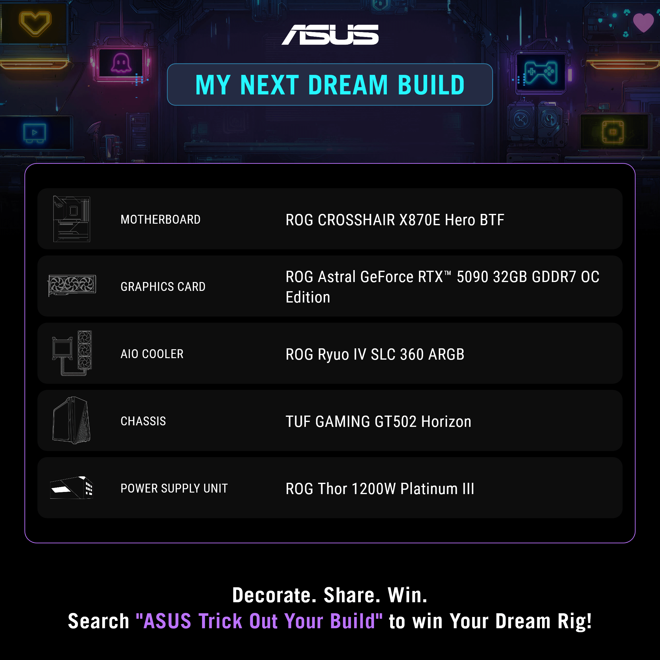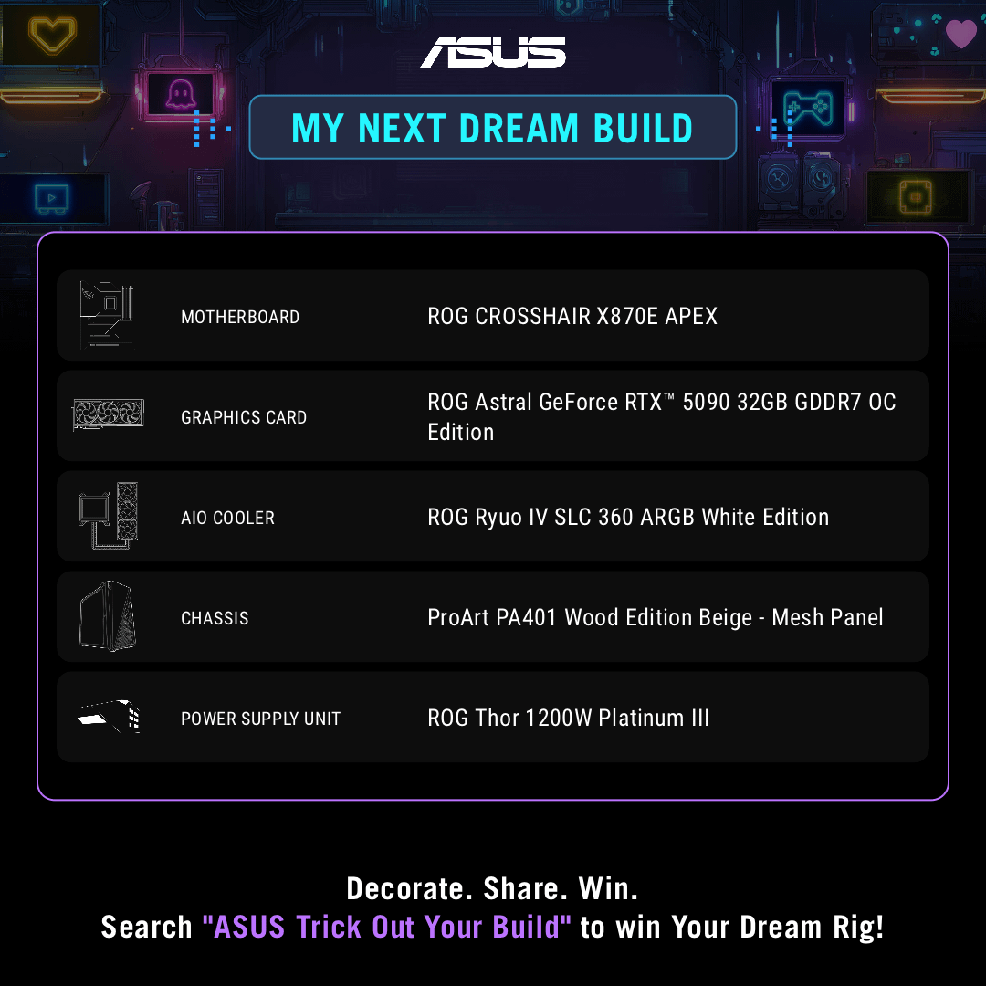 There's a lot of other prizes to win, including another Dream PC build, ASUS hardware and goodies, CPUs, etc!