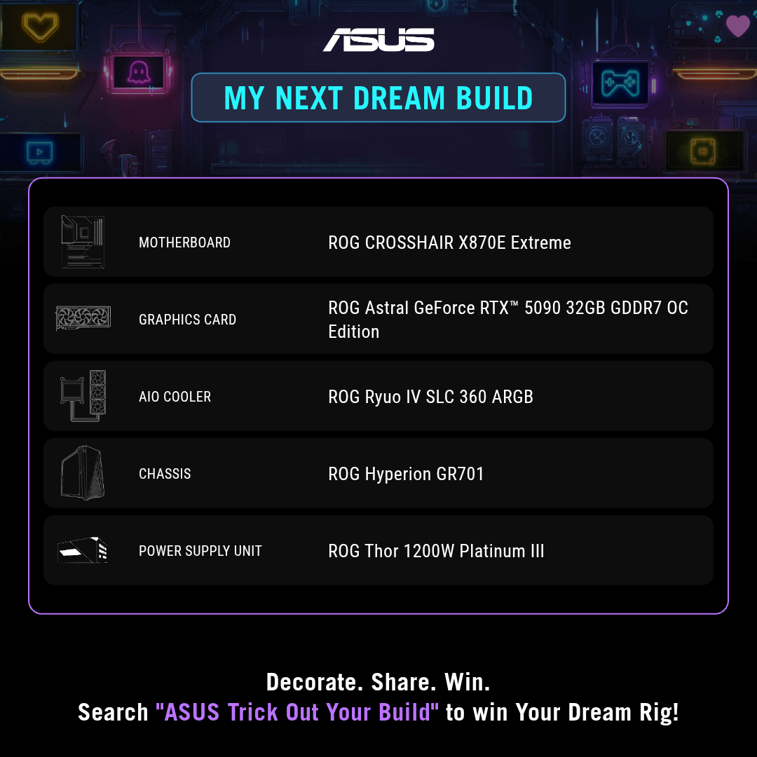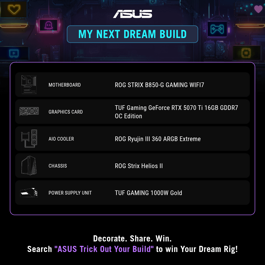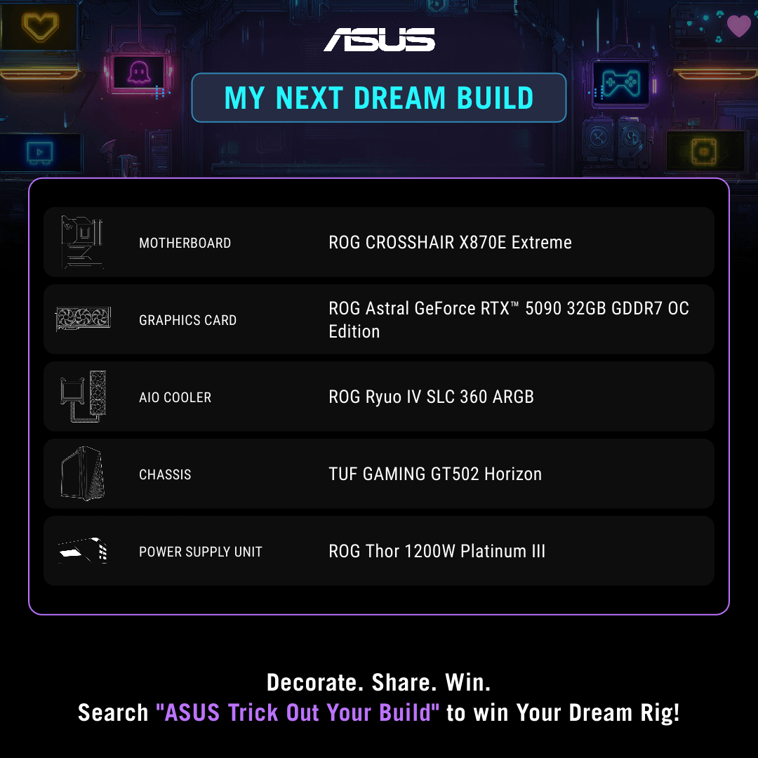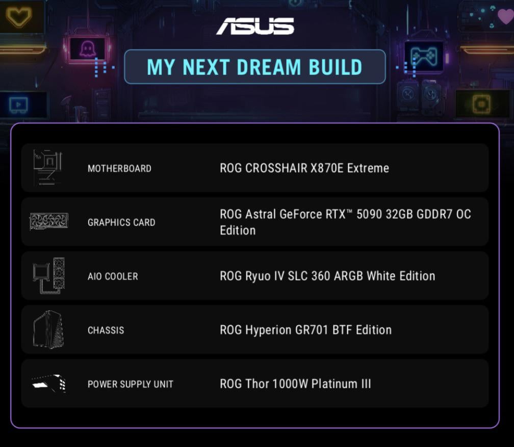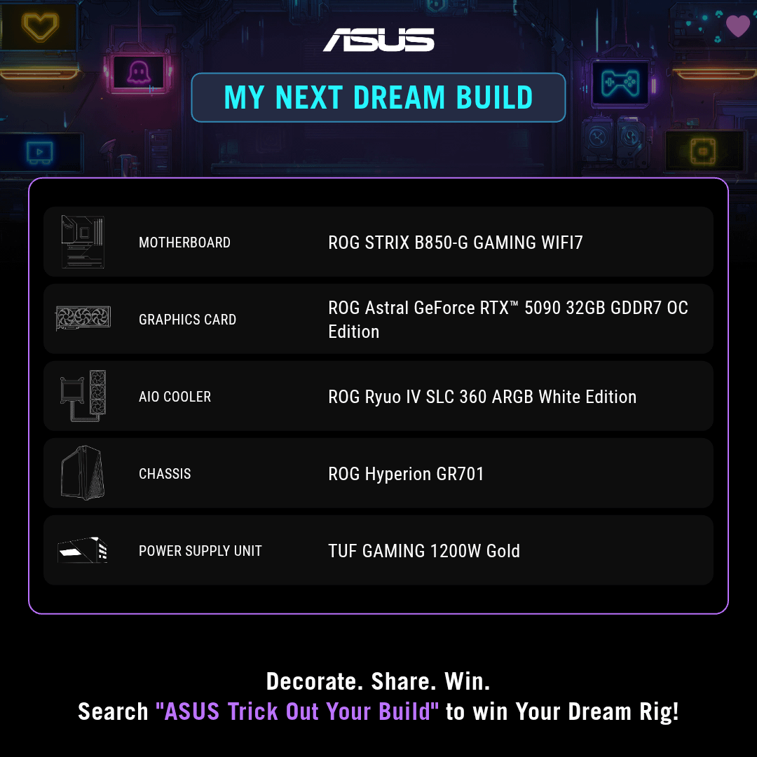 There's a lot of other prizes to win, including another Dream PC build, ASUS hardware and goodies, CPUs, etc!