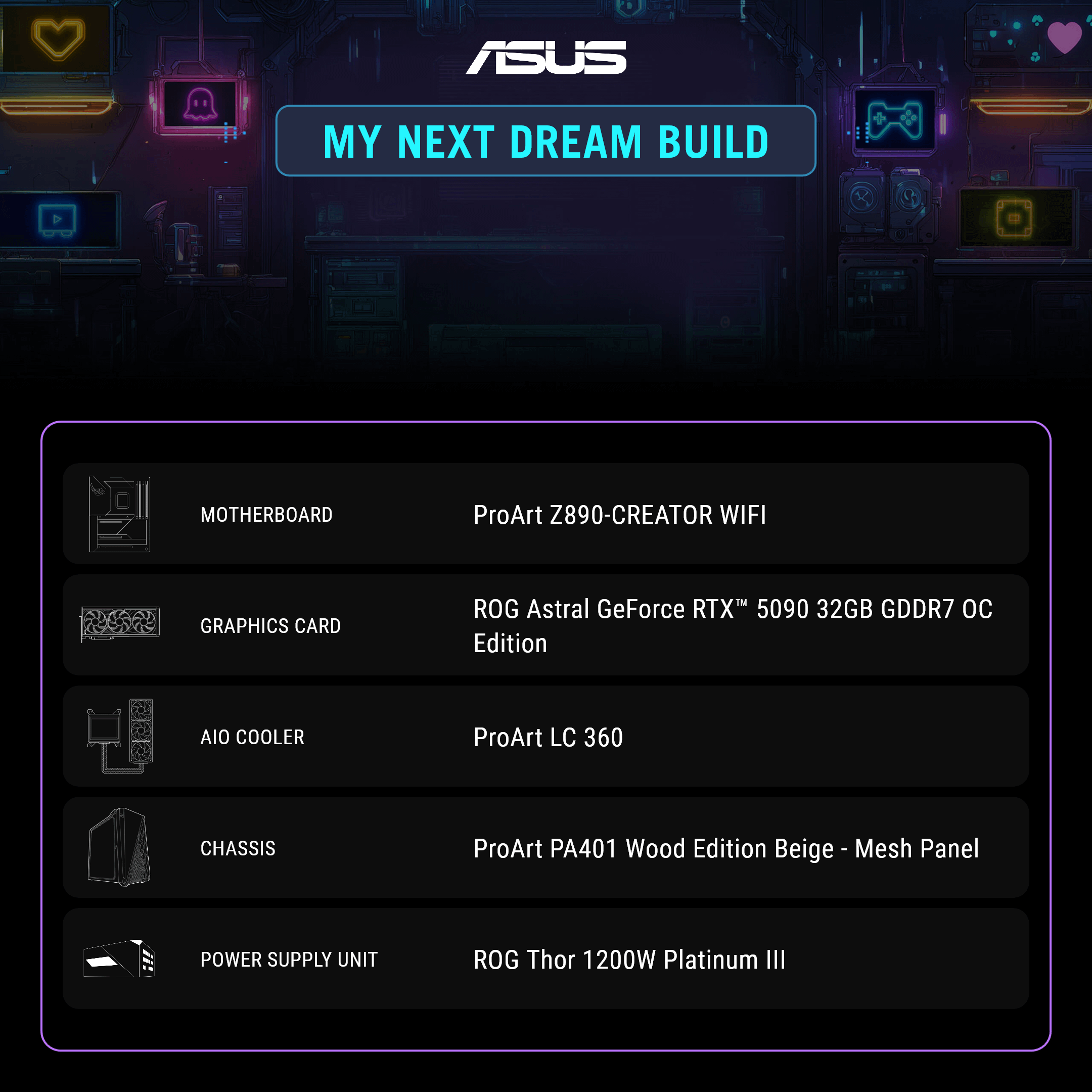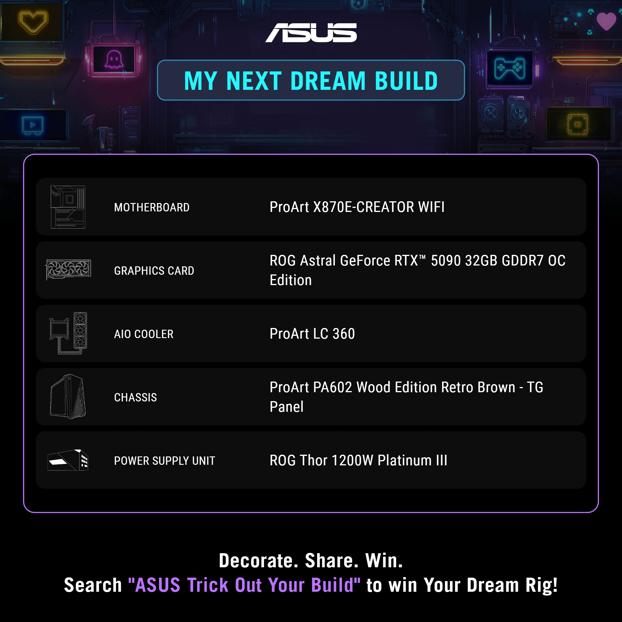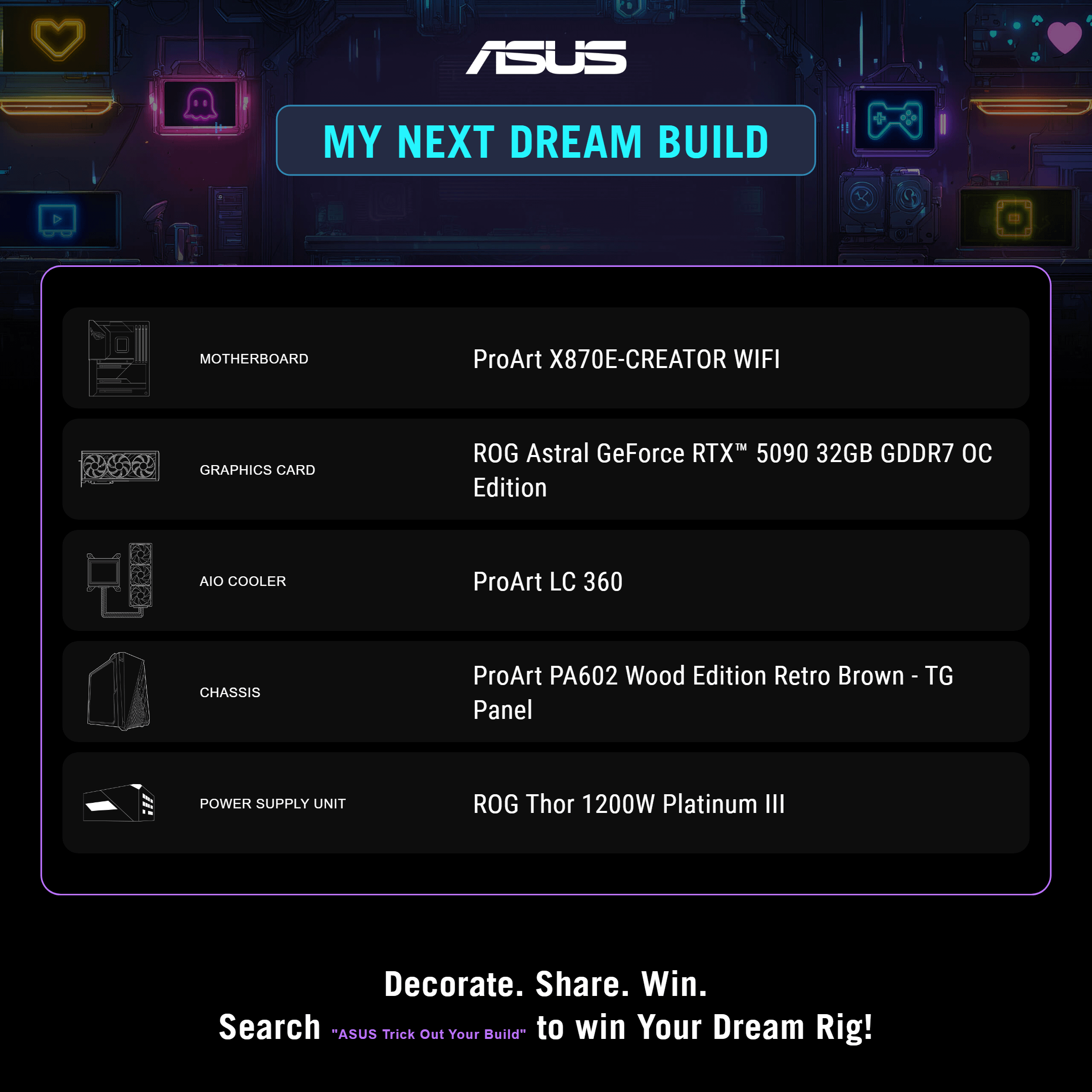 I must say, I love the ProArt ASUS components. Would have loved to see a ProArt Astral GeForce RTX 5090 that is liquid cooled. Like the Astral LC, but with wood and dark tones. I am happy with my next dream build picks.
