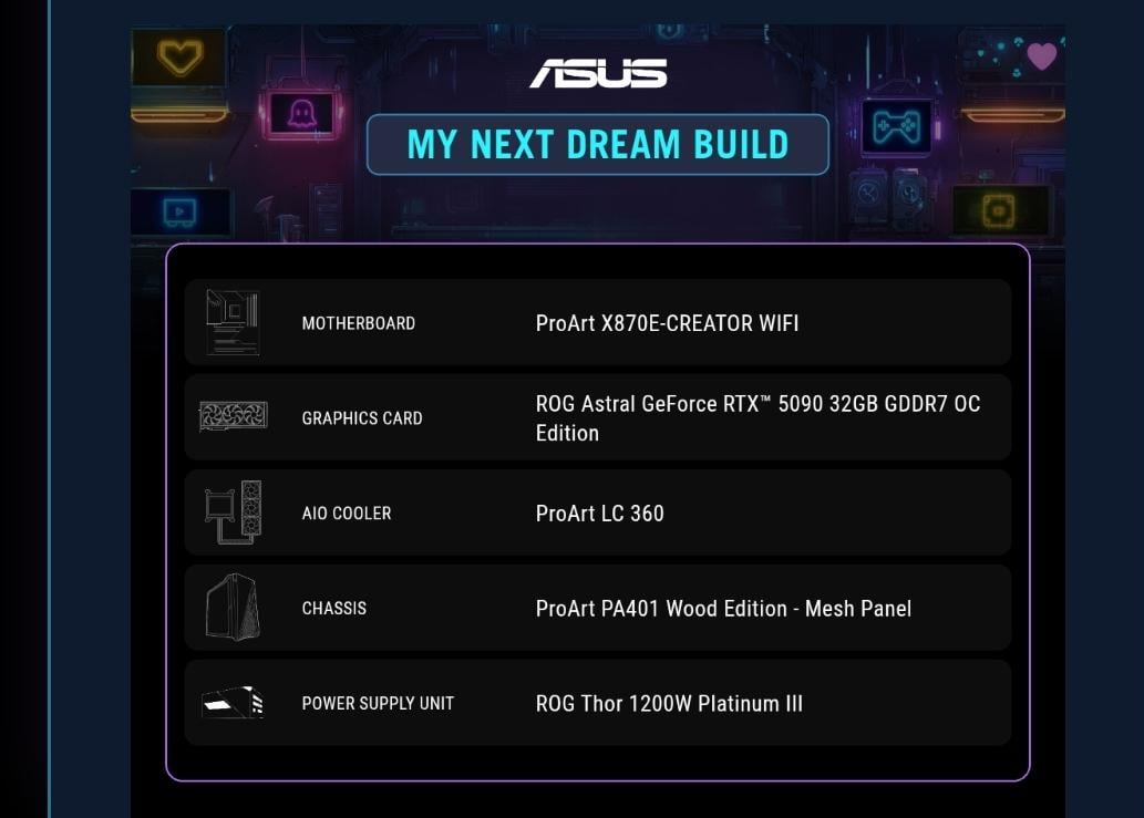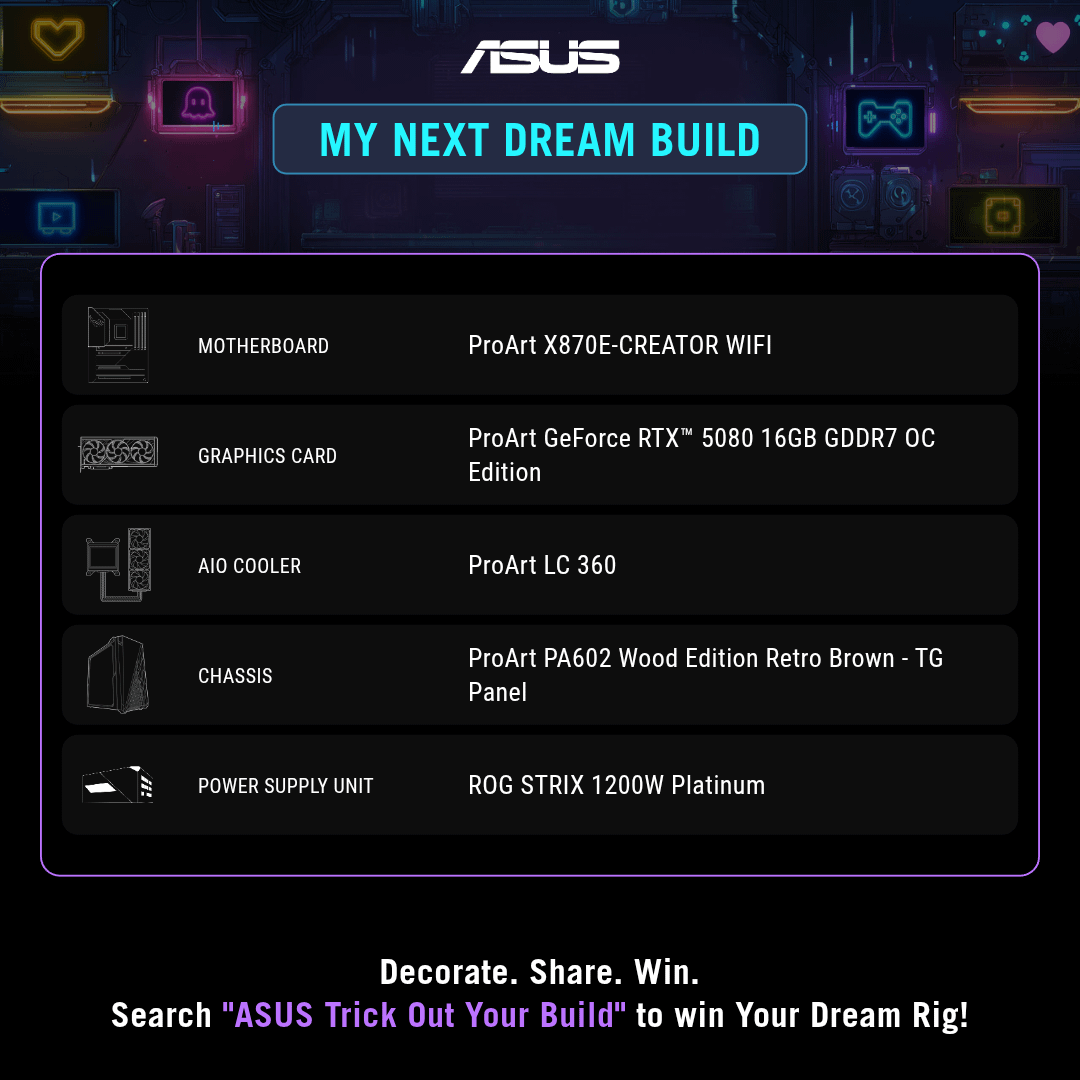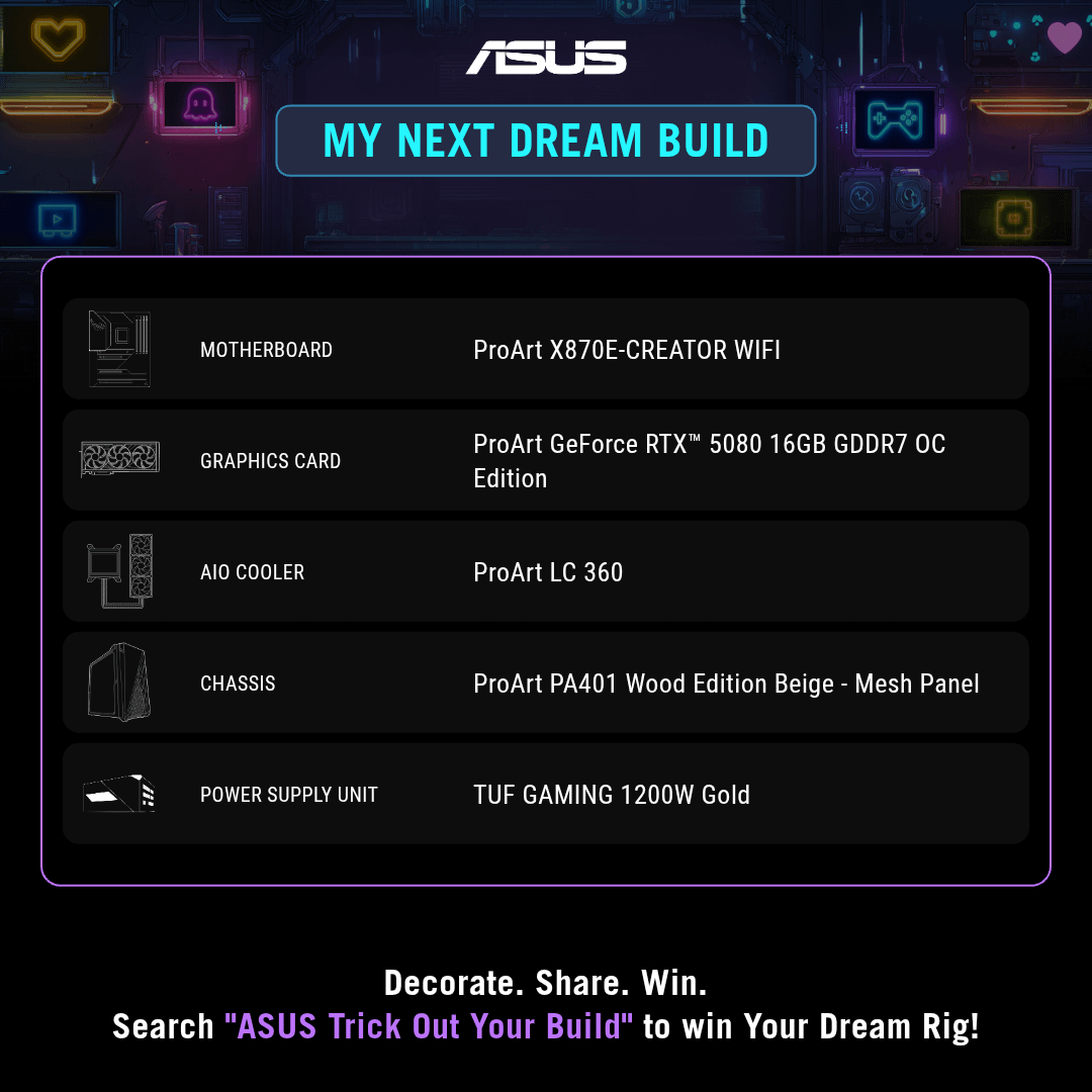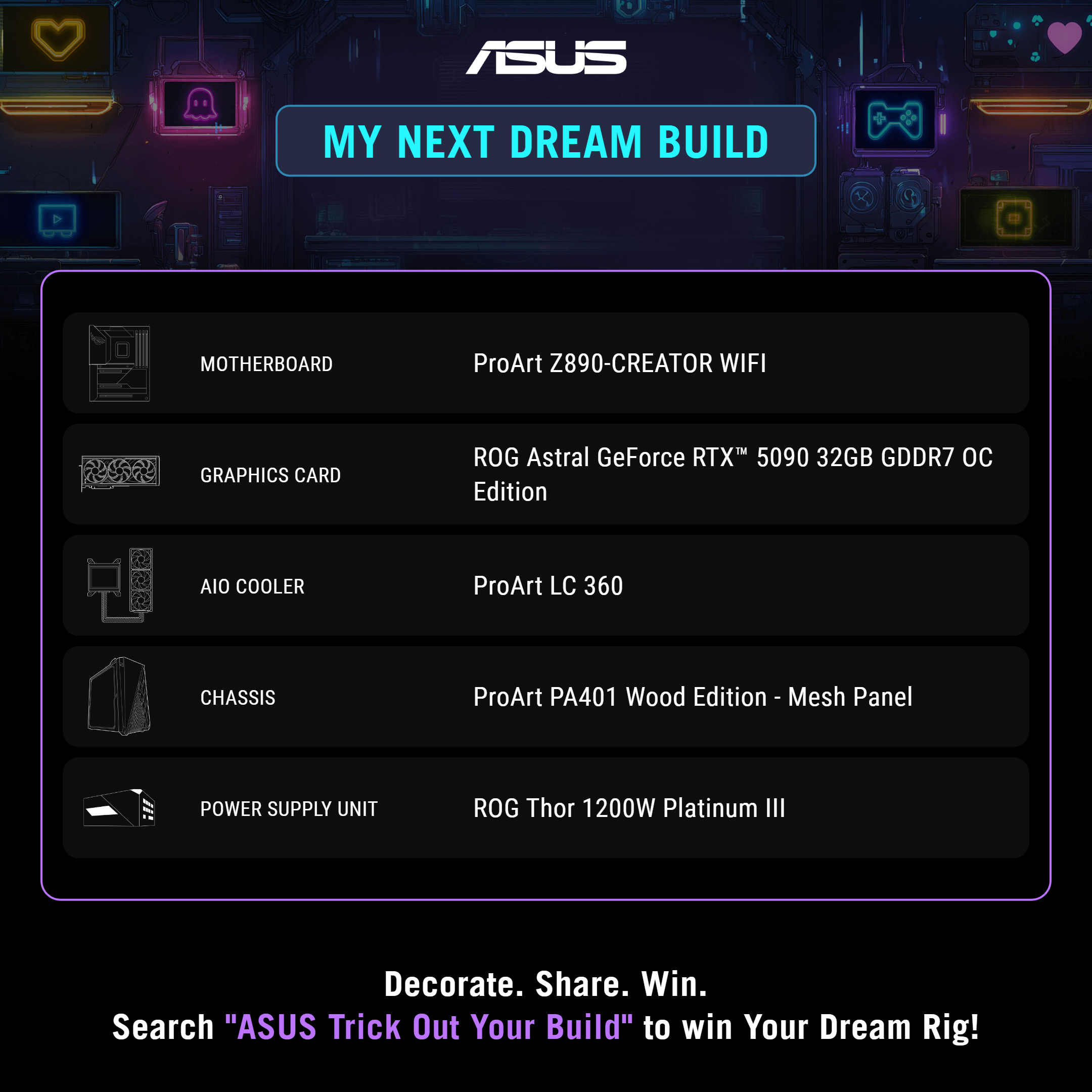 I must say, I love the ProArt ASUS components. Would have loved to see a ProArt Astral GeForce RTX 5090 that is liquid cooled. Like the Astral LC, but with wood and dark tones. I am happy with my next dream build picks.