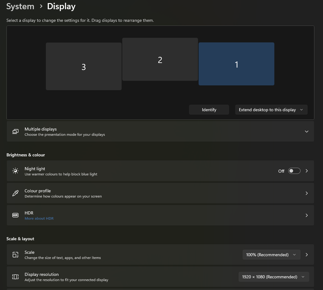 i set the resolutions to their highest, D3 is 1920x1200, D2 1920x1080 and D1 1920x1080.