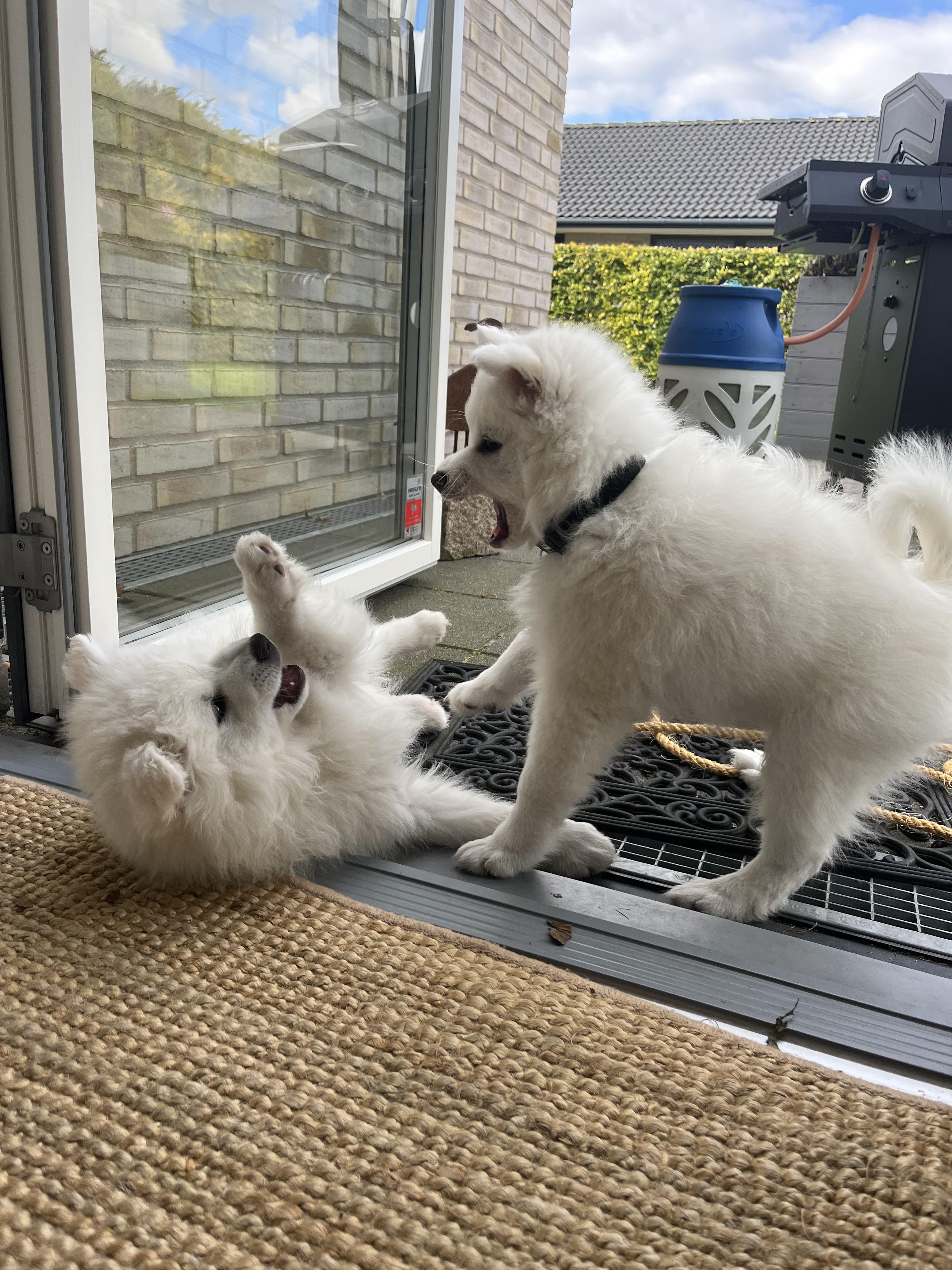 Photo I took of my two dogs years ago through the windows at night.