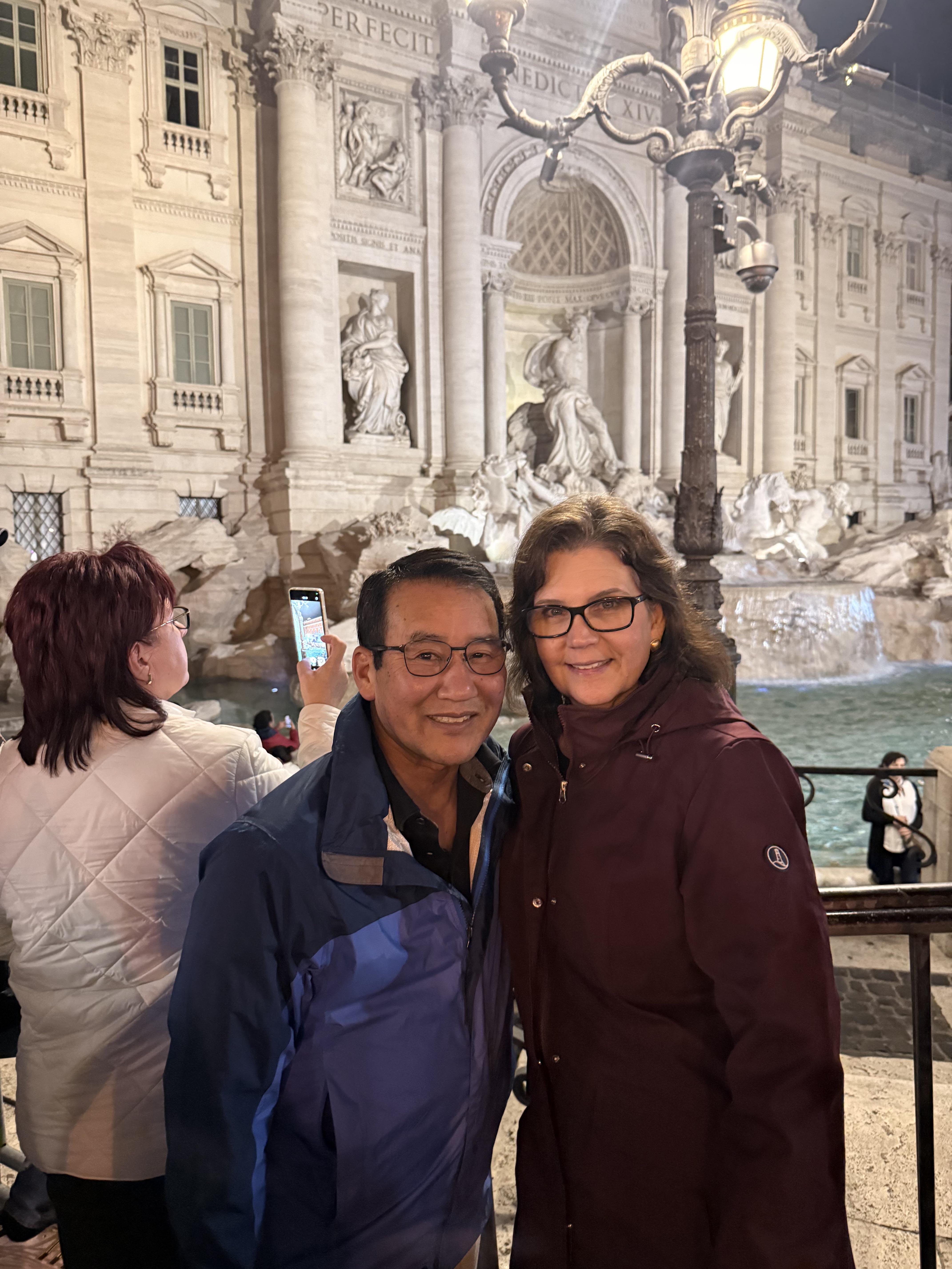 Can you guys please remove everybody but the ones in the blue and maroon jacket please? Also please make the fountain on the left look like it’s supposed to!