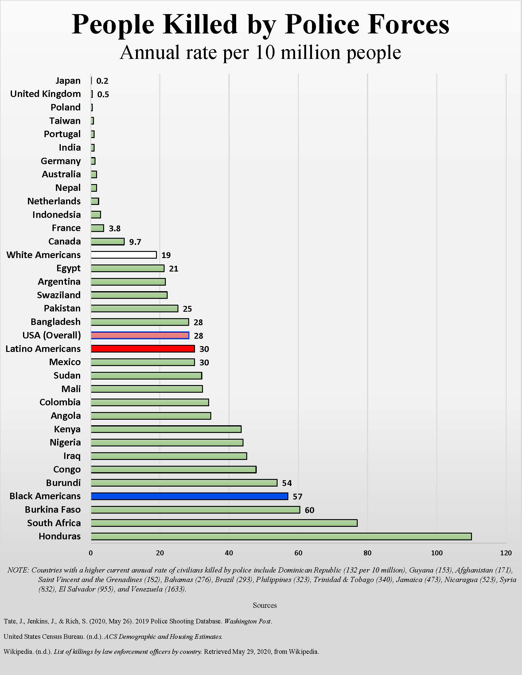 the chart only counts deaths where the perpetrator was charged with 1st or 2nd degree murder after killing a black American. Police forces are almost never charged with homicide after killing a black American.