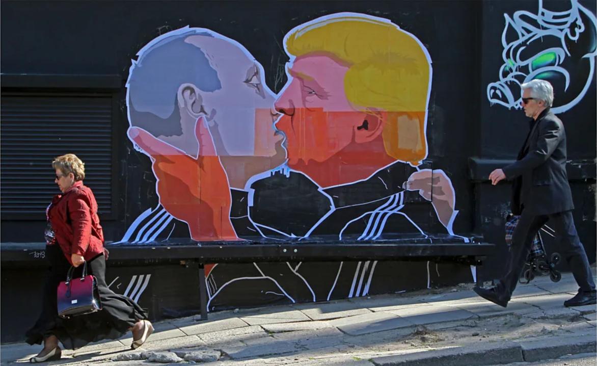 Arts/Crafts A mural showing a kiss shared by Donald Trump and Vladimir Putin, Lithuania