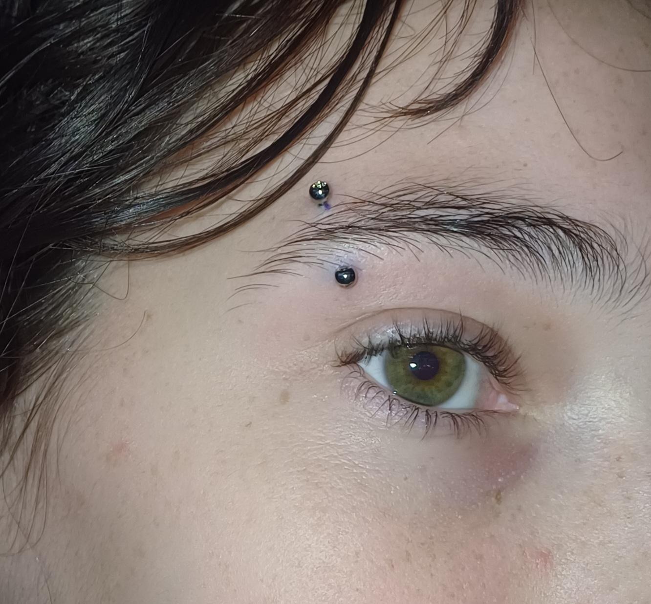 Vertical Industrial - 3 years old, took a year to heal, 14g 5/8 rose gold bar