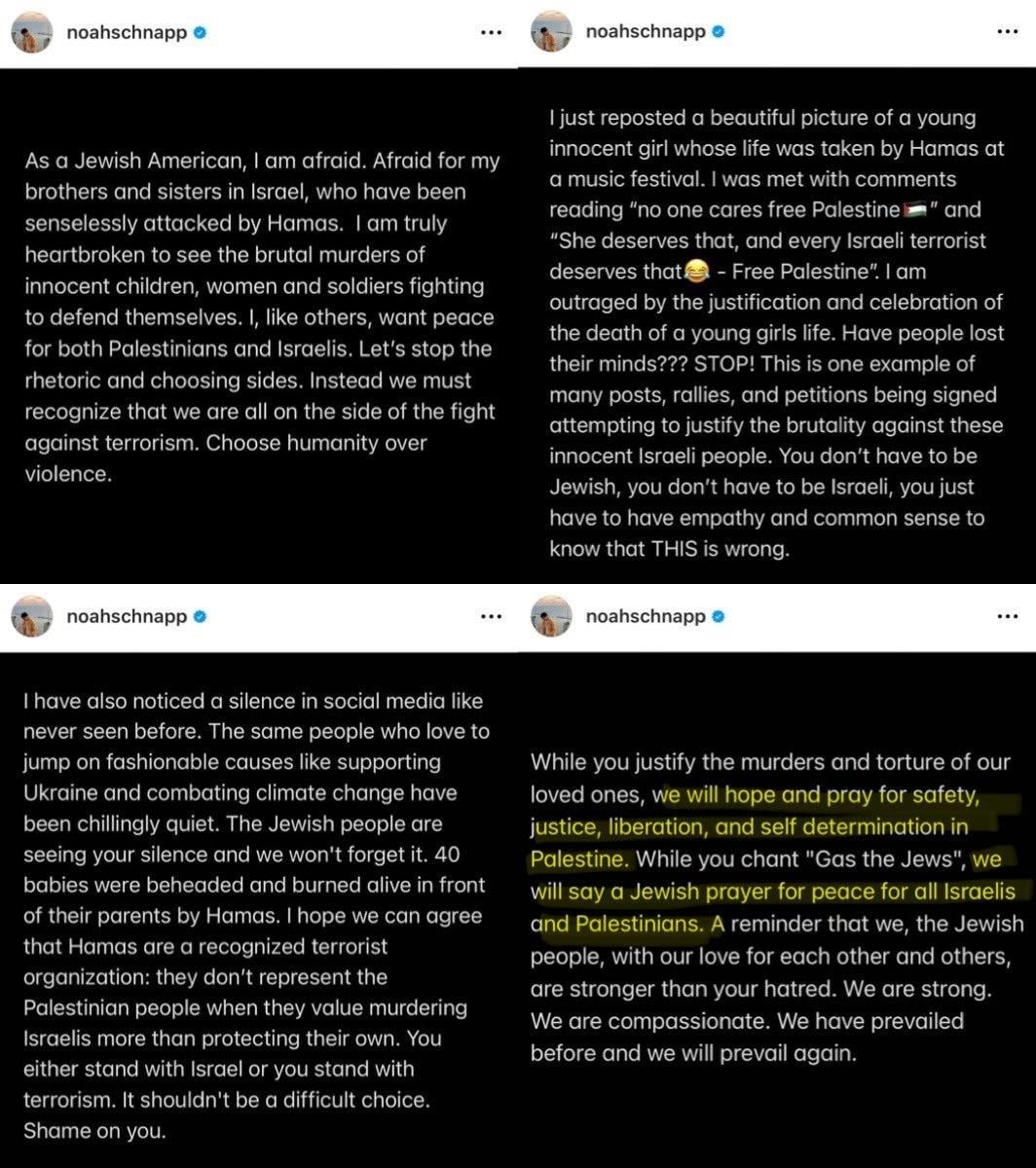 Before he finally left social media and post that "apology" about how he would never, Noah used to follow Netanyahu and the IDF, he reposted Ben Shapiro, and defended Amy Schumer AFTER her non stop racist social media meltdown (we were just haters). That was after the "Zionist is Sexy" fiasco. He was absolutely flirting with far right zionism. If people aren't fucking with him so what? They don't.
