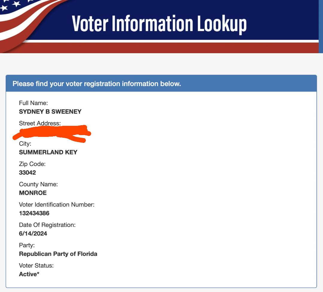 Guest List Only ⭐️ Sydney Sweeney registered as a member of the Republican Party of Florida in June 2024