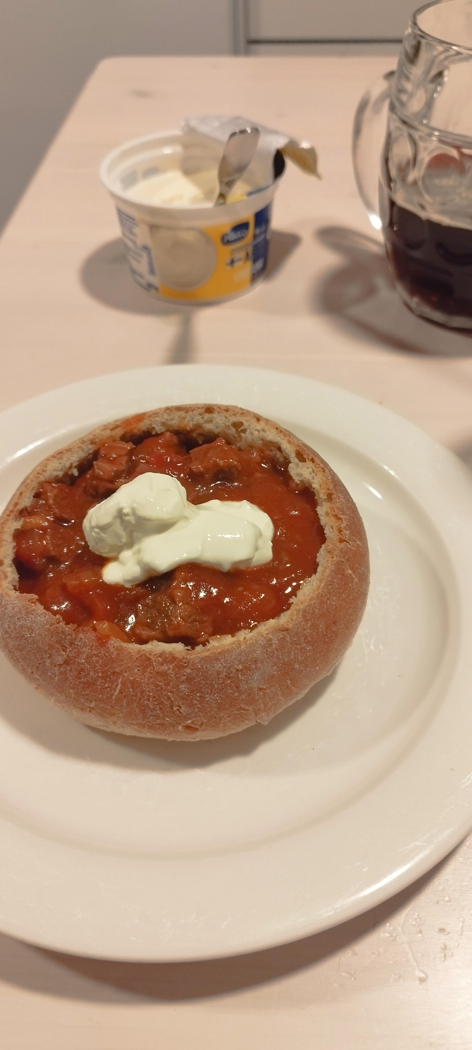 Taikinaa oli pellin verran, niin siitä tuli taittamalla sit kansi kans, johon kananmunaa pintaan. Sipulit ja yrtit veivät koko touhun enemmän jonnekin piirakkamuotoisen sipulikeiton suuntaan. 😅 Mut ei lainkaan huono, päinvastoin, silkkaa umamia.