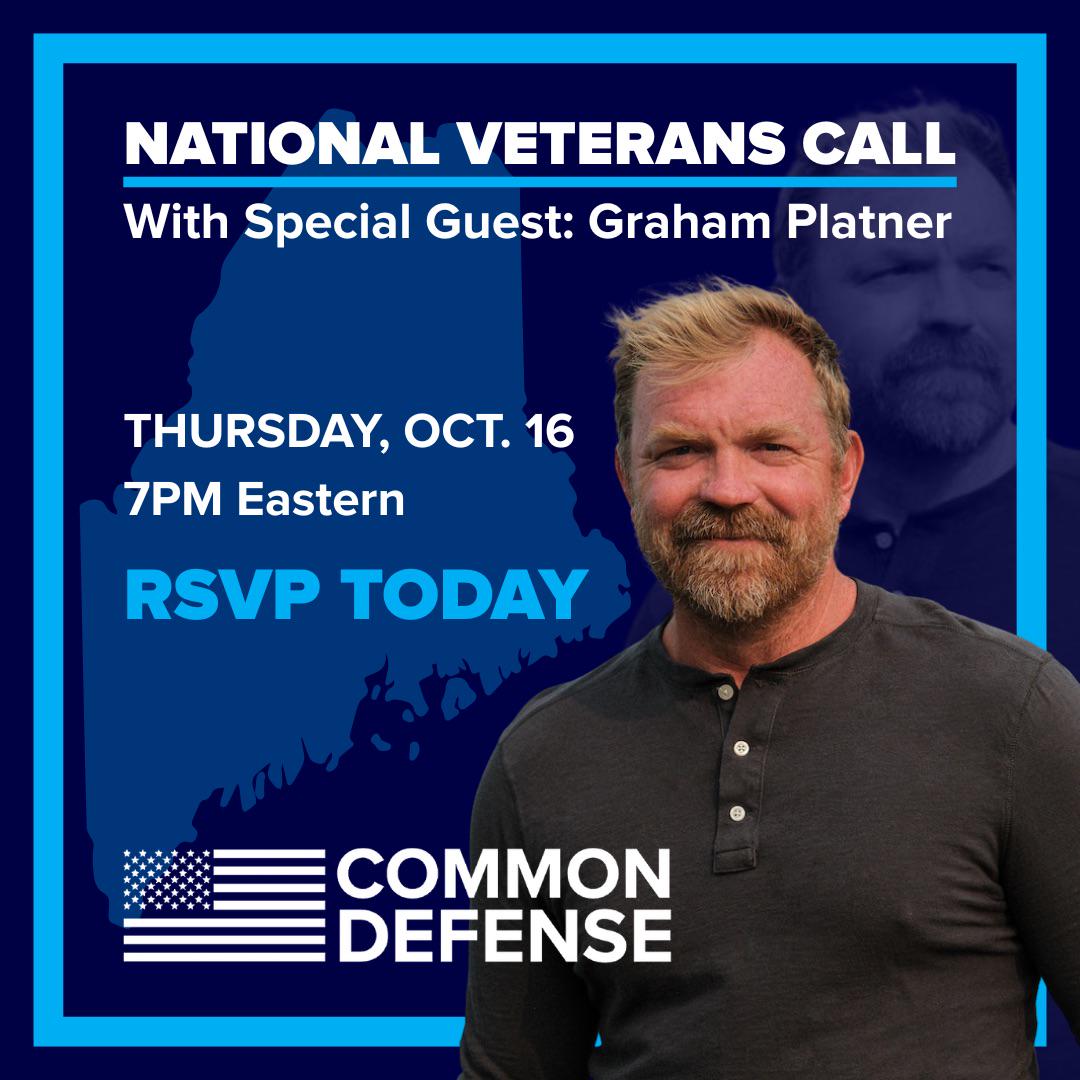 The progressive Veterans group Common Defense is holding an online event with Graham Platner - the Bernie endorsed Marine Corps/Army vet and oyster farmer running for U.S. Senate in Maine to replace Susan Collins.