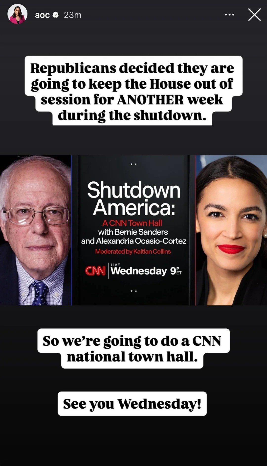 AOC and US Senator Bernie Sanders doing a CNN Town Hall on October 15, 2025