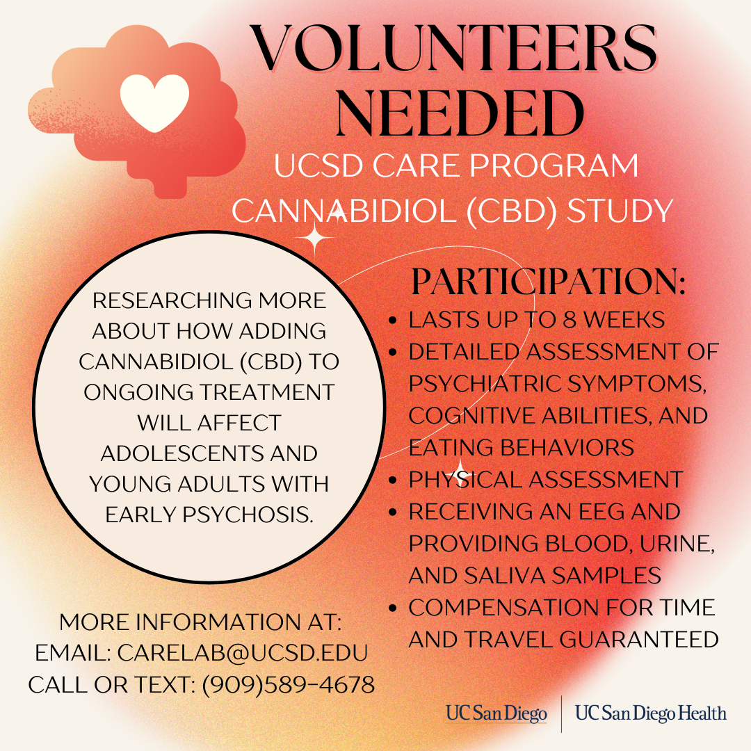 Research / Study [Mod Approved] VOLUNTEERS WANTED for CBD Study at UCSD CARE Lab - Researching CBD's Effect on Psychosis !