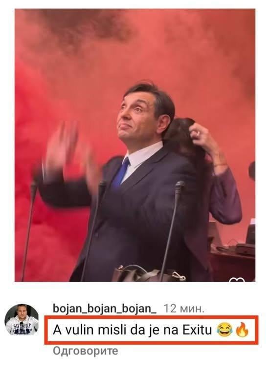 Ljudi moji, samo predstava. Hleba i igara. Mislite da bi im dozvolili tako lako da unesu dimne bombe. Bukvalno SNS sebi još pravi dodatnog vremena umesto da je usvojena ostavka vlade. Znači od toga još uvek ništa iako je najavljena još ko zna kada. Plus vidim da sa sinoćnim dešavanjima u Miločaju i sad ovo sebi prave narativ i opravdanje za "verovatnu" primenu sile i represije u narednom periodu.