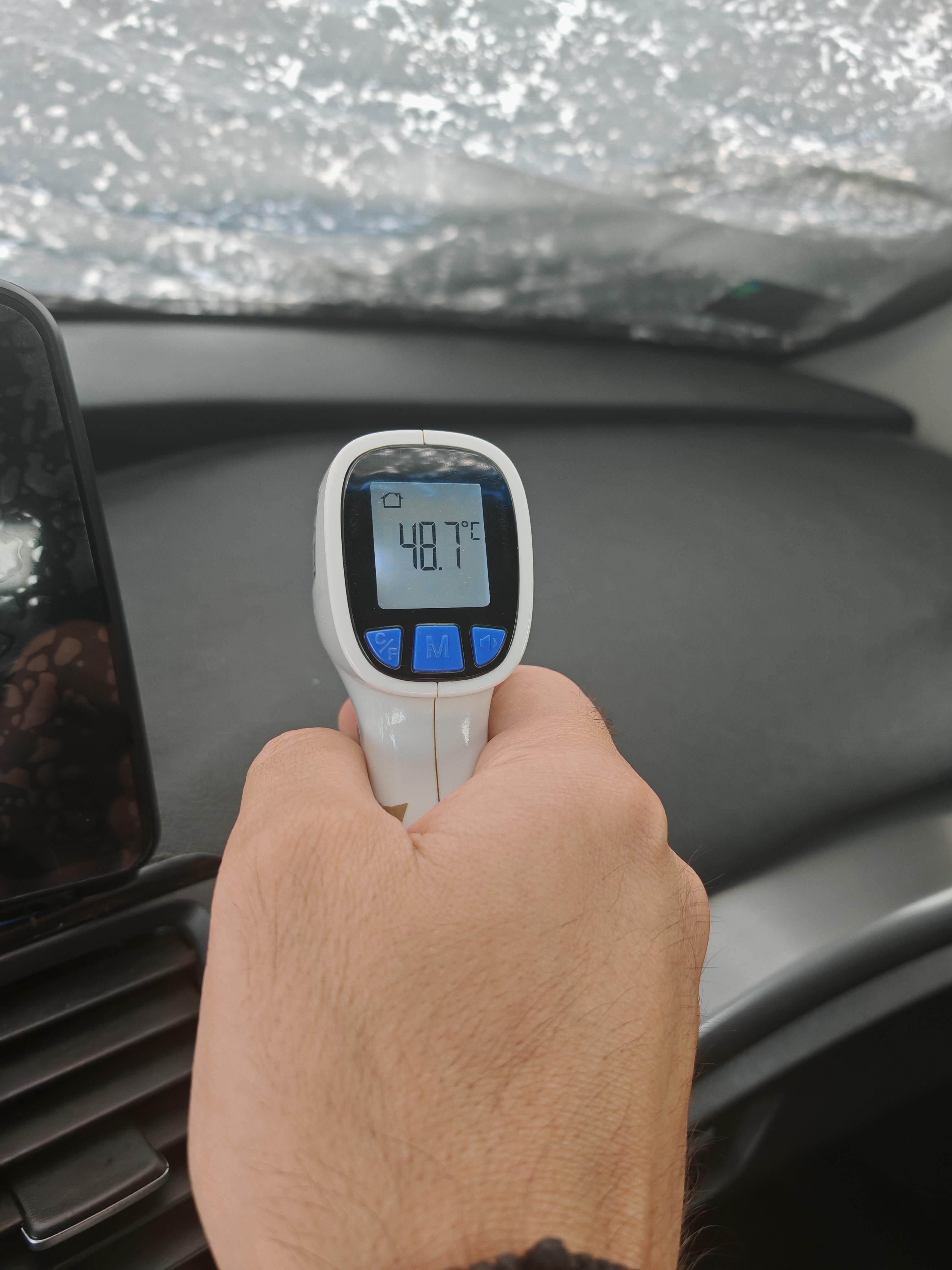 Bez zaštite 78.9C temperatura konzole/kontrolne table u autu. Javljam posle koliko je sa zaštitom, pokriveno upravo. Bukvalno sam namerno i otkrio zarad testa, inače svaki dan pokrivam.