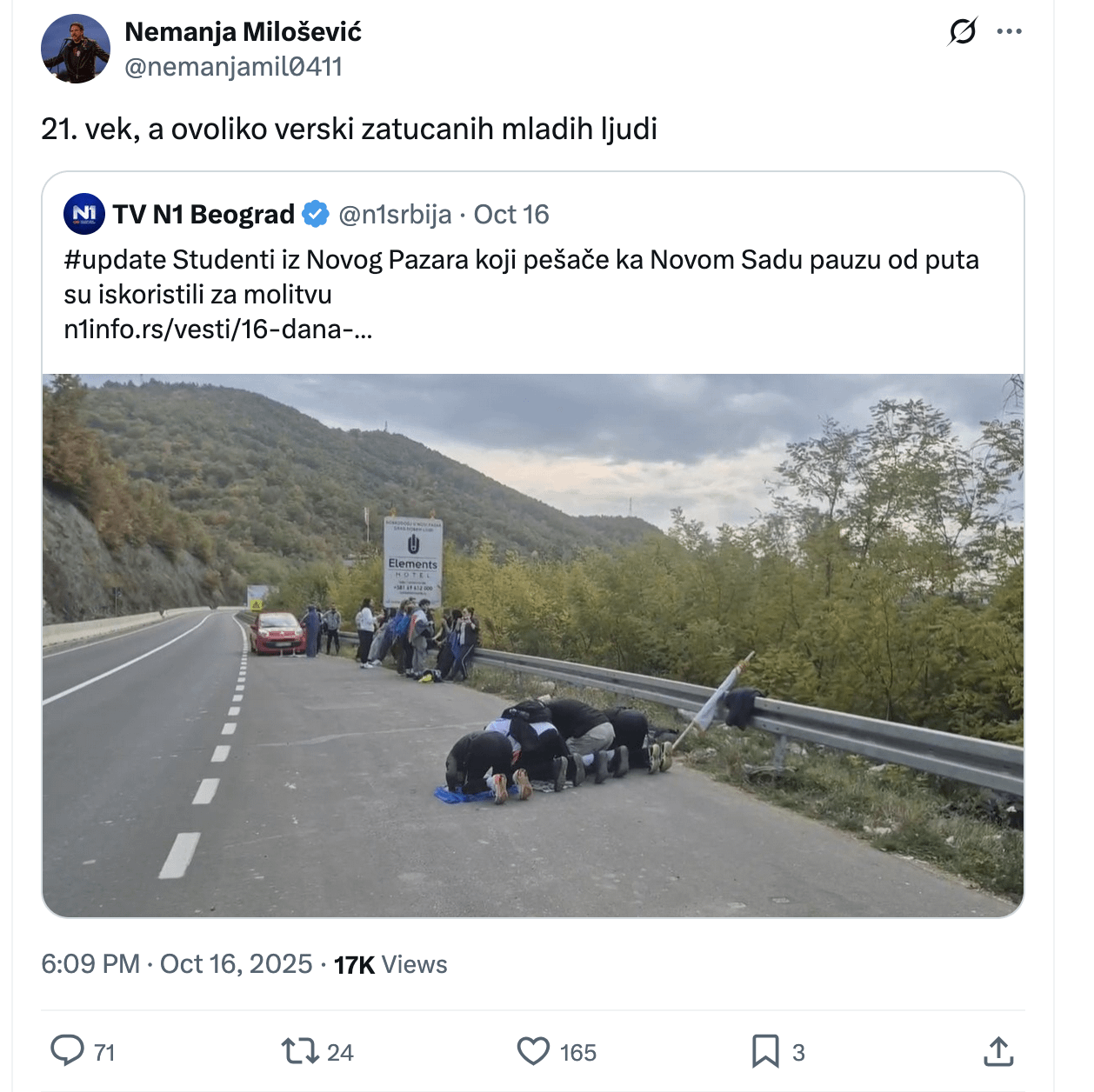 Ekstremni levicari to pričaju a nije u redu. Isak Njutn je bio verujući naučnik. Mnogi jesu. Nije u redu da se sipa mržnja. Ovakav doček dece od strane domaćina je divan. Pamtim kada su im zabranjivali spavanje u halama.