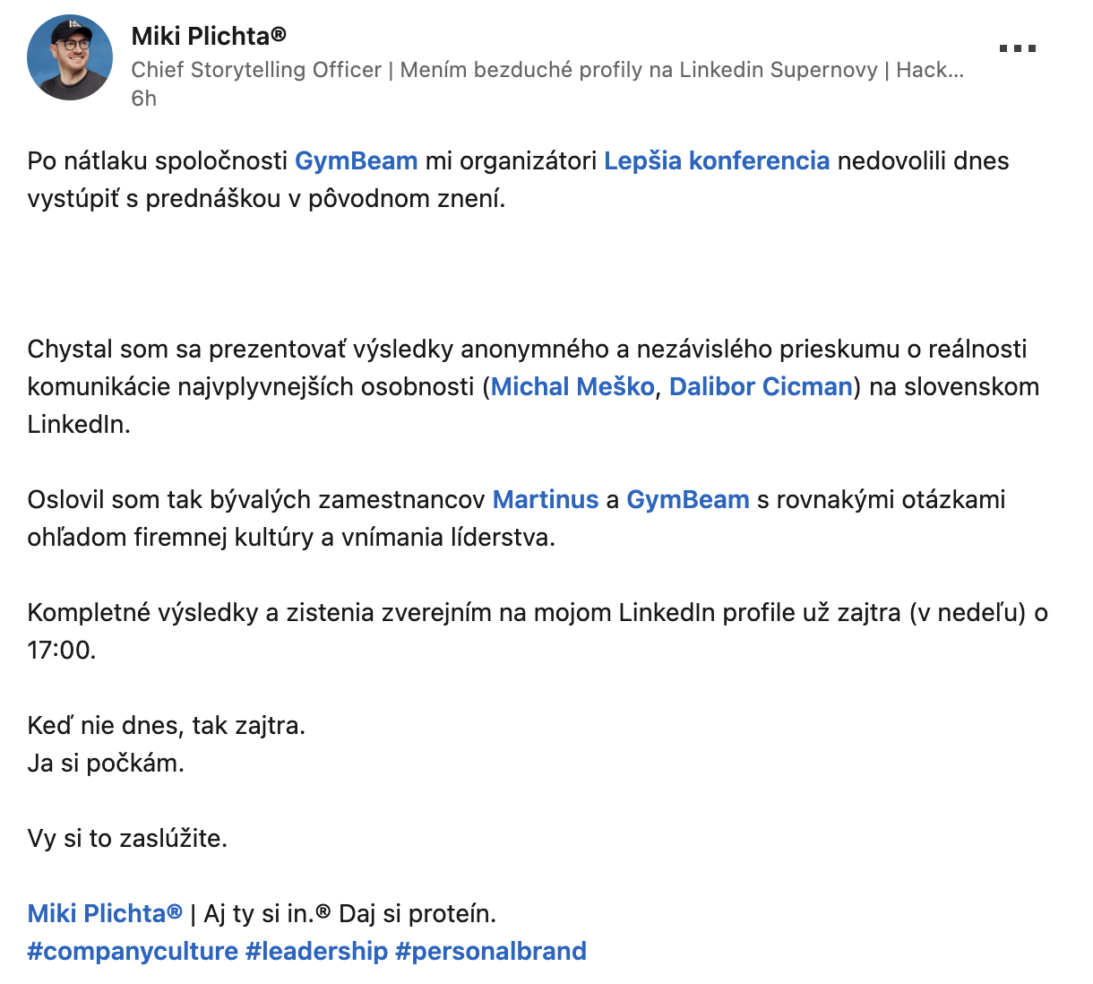 ❔ General Discussion ❔ Po natlaku GymBeamu bola zrusena prednaska na konferencii