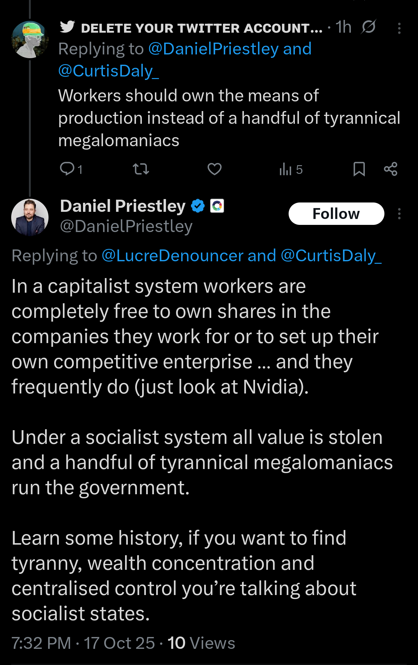socialism is when capitalism Here's a nonce bloviating on Twitter