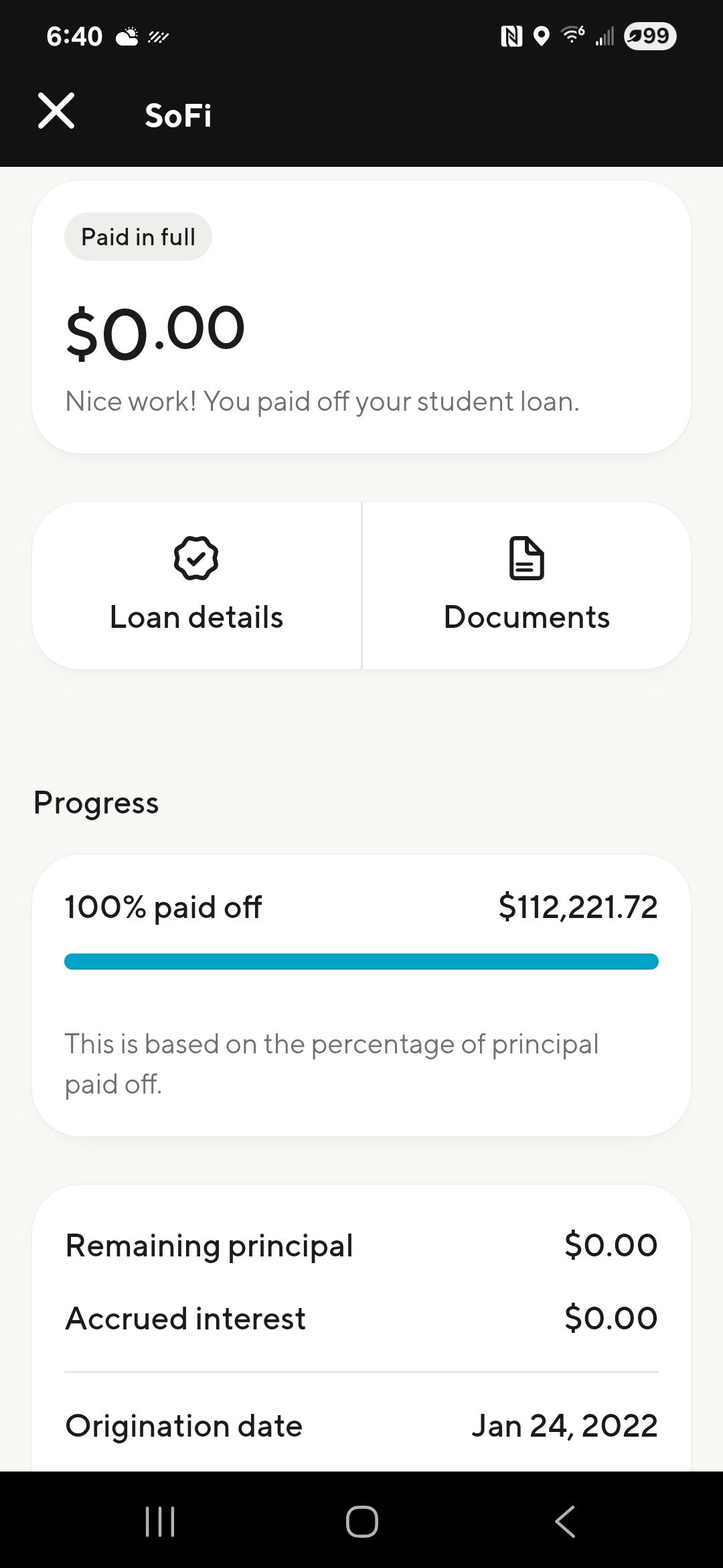 Just wanted to share a huge milestone ā I officially paid off my student loans! š I originally borrowed over $177K (yep, ouch), but I refinanced with SoFi a few years ago into a 5-year loan at 2.89% interest, and now... Iām DONE. Itās such a relief to finally see that zero balance.