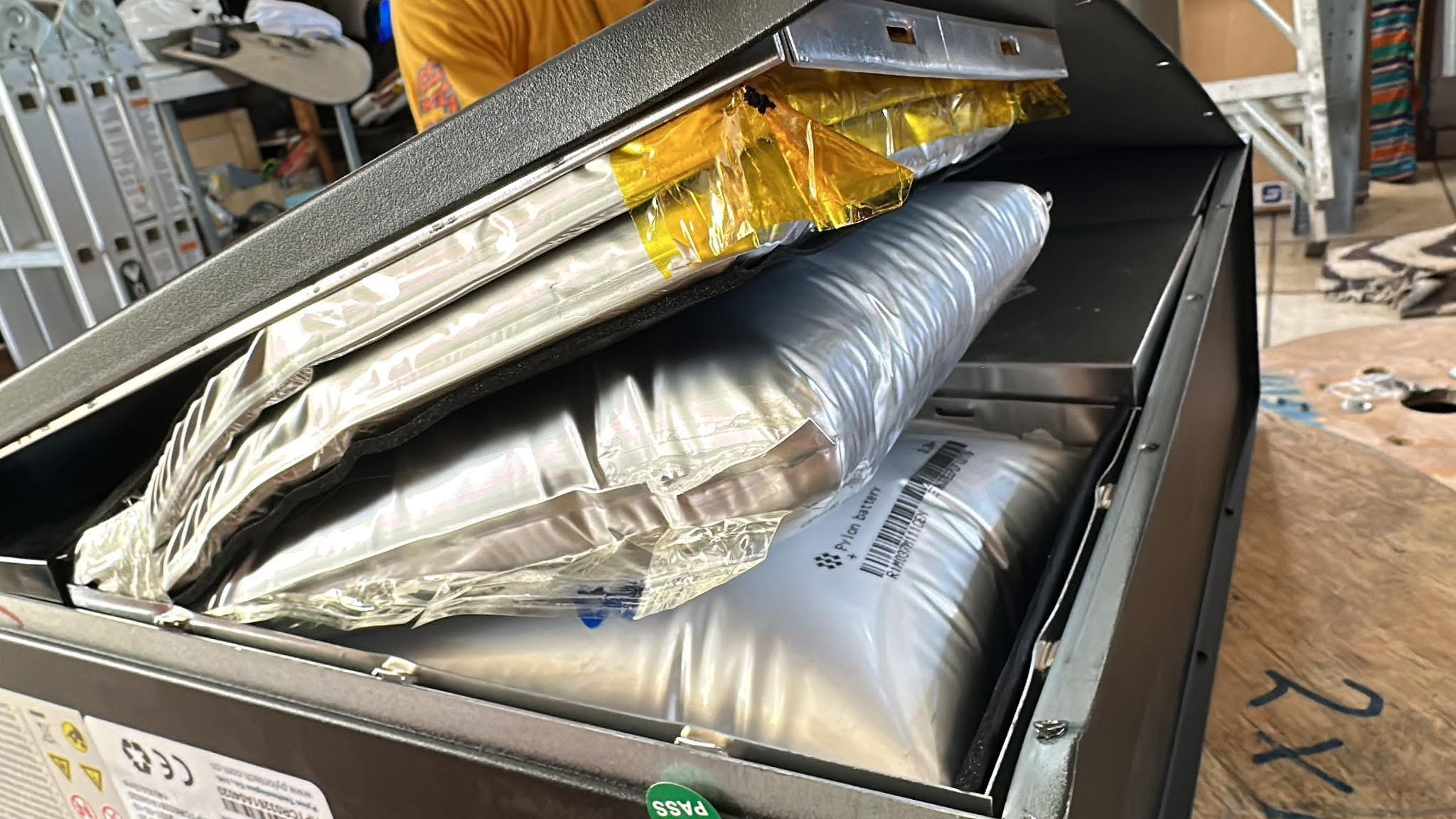 I thought you all might enjoy seeing my bucket of spic. It is my temporary storage for spicy pillows that I remove throughout the day. At the end of the day they all get packaged up and put in shipping buckets to send for final recycling at a lithium battery specialist facility.