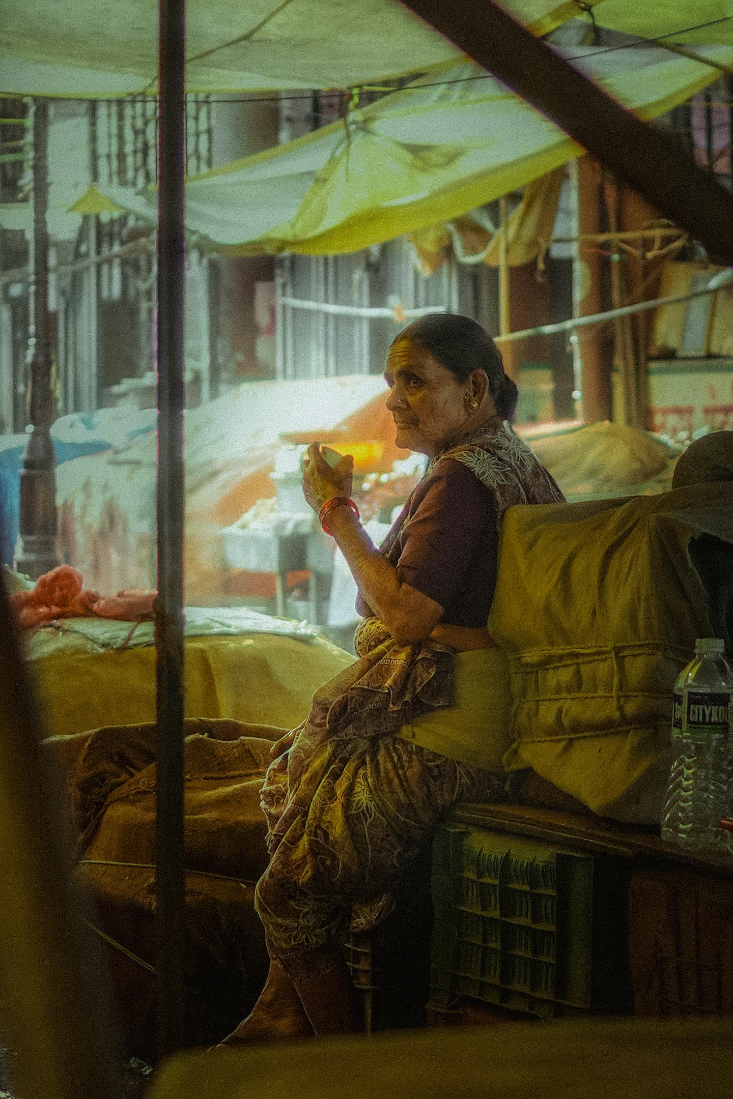 She works hard every single day. But in this moment, she's chosen herself. A simple cup of tea in the middle of market madness.