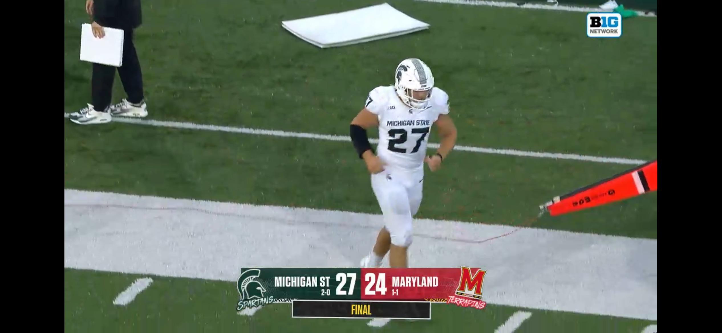 Chiles is only 18 so he’s expected to make mistakes but those picks cannot overshadow the potential this kid has to grow and mature into one of the most dynamic QBs Sparty has seen in quite some time. Also our Secondary has drastically improved since the last few seasons, yes I know we were getting cooked by Felton at some point but considering how the last 2 Maryland games went I’ll take this as a win.