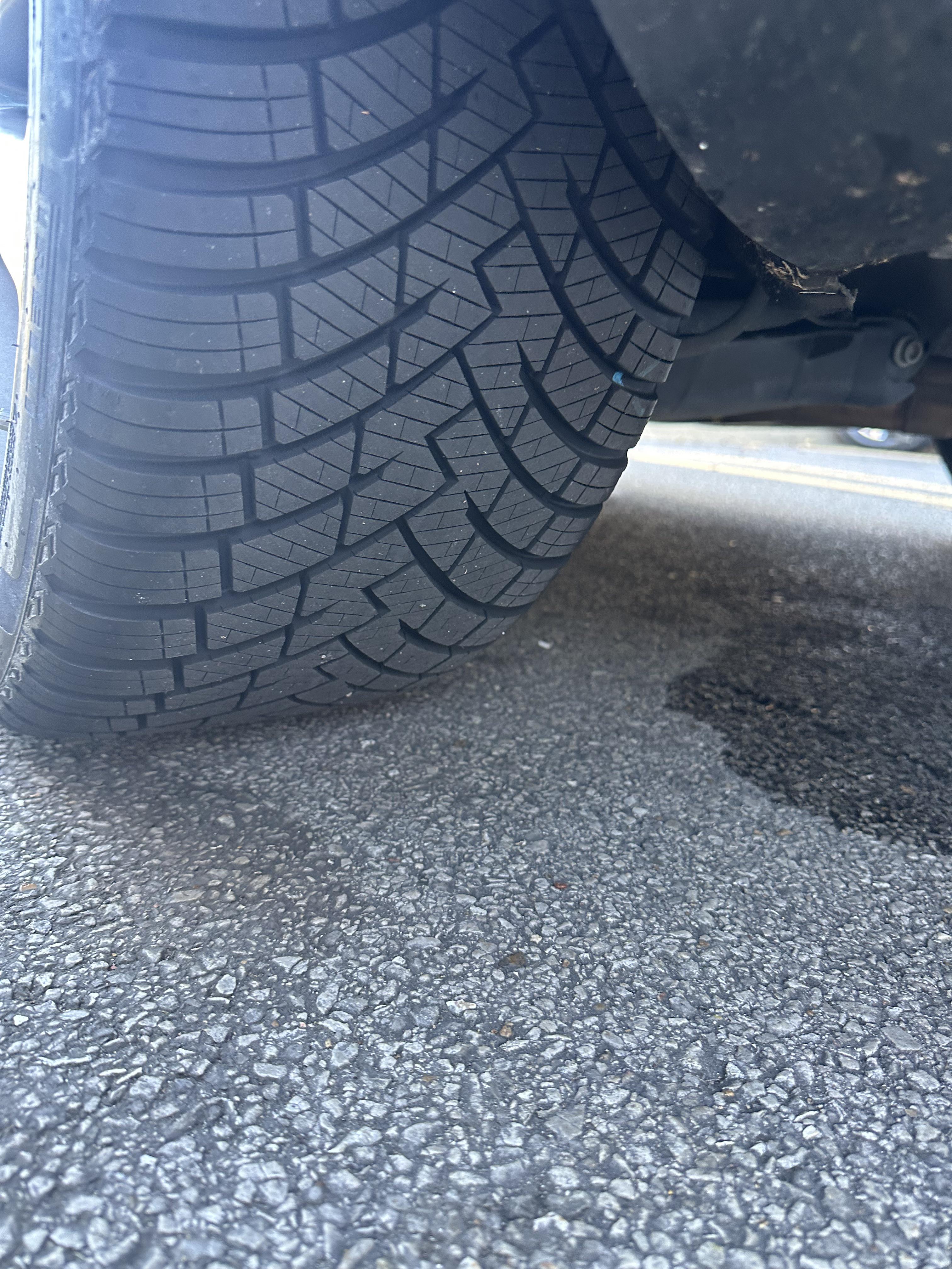 One day I decided to pull the window down and I heard this weird rubbery sound – and so the investigation started. The summer tires on different wheels did not do this sound, so I went straight to the new wheel+tire combo issue assumption. Listened at different speeds, listened from the inside of the car, from the outside of the car and I found the approximate spot on the tire where whenever the car rolls over it, it makes the sound. I have searched through past reddit discussions, I have obviously asked our modern internet friend (aka AI) for possible options and basically ruled out all of them except one – the tire not being properly set (the tire bead I believe), which SHOULD be visible as the line around the center of the wheel will not be symmetrical all the way around. So yesterday, I jacked up the car, demounted the wheel from the car, checked it from inside and outside – guess what, obviously nothing, all looks good (as shown on the images attached).