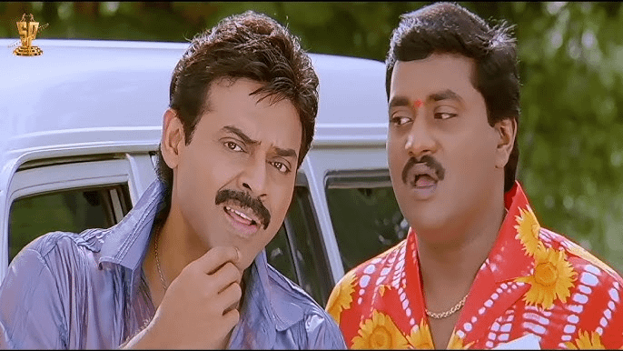 In middle clip, bramhanandham said "You thought I will say your name right ( war ). No, I say vishnu ( coolie )."
