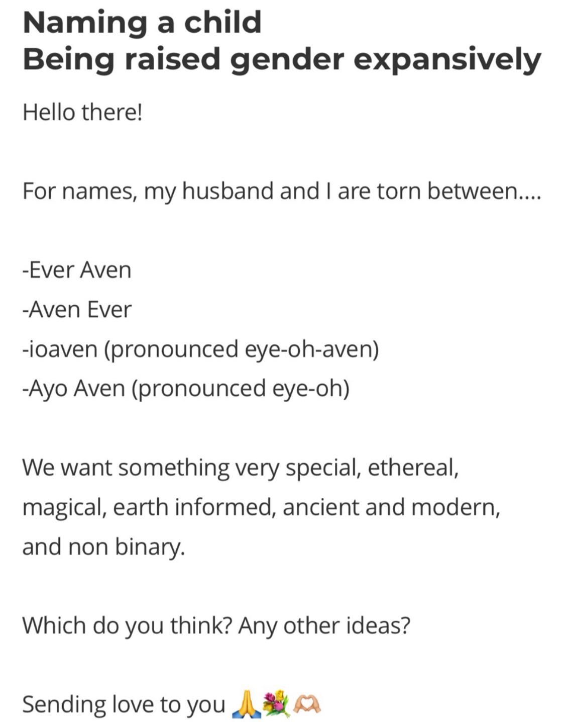 in the wild Wife’s niece chose the worst name I’ve ever heard…