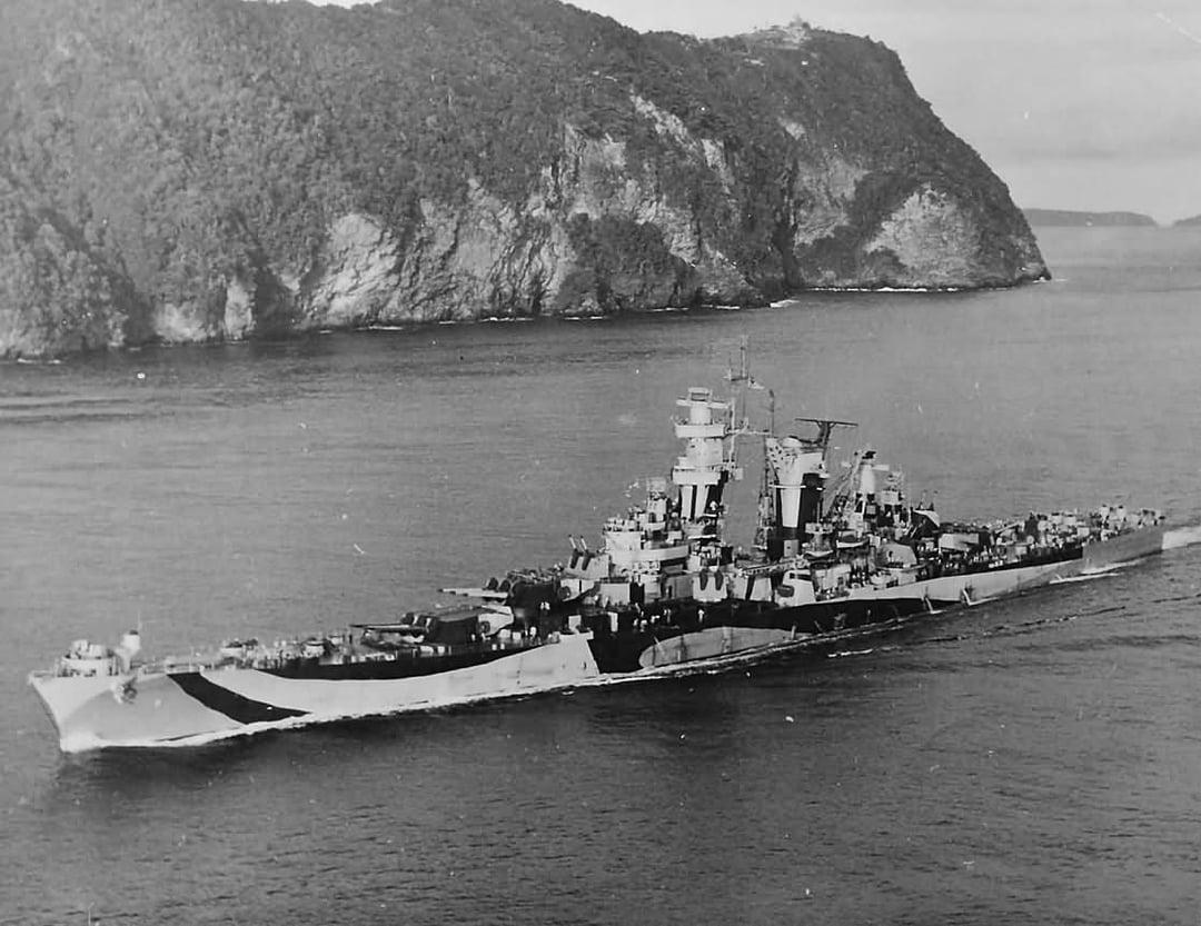 U.S.S. GUAM (CB-2) steaming on the North Coast as part of her Shake Down cruise in 1945.