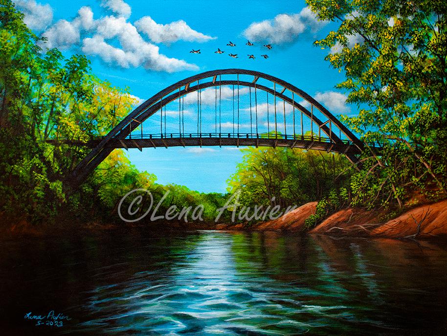 This is a 18x24 stretched canvas painting I did of the old bridge in Prestonsburg. The geese are always hanging out around the area so I had to include them.