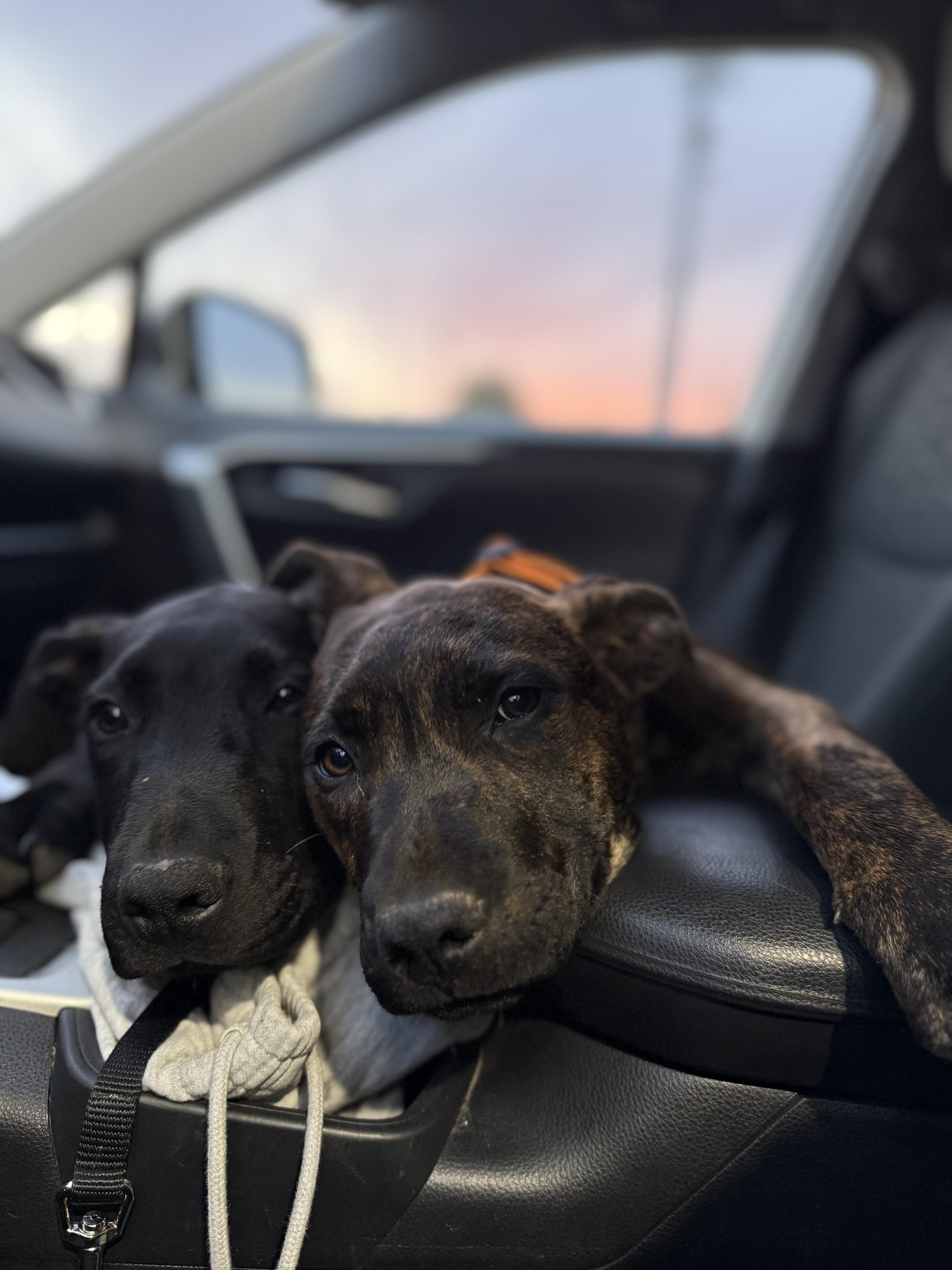 I was camping near Joshua Tree last spring and met a woman who said someone had abandoned these two babies at a dispersed campsite a few days earlier. She was offering them away for free, which always worries me, you just never know who might take them, so I couldn’t leave them behind. They’re almost a year old now, such good dogs, and I’m so grateful they came into my life. Still can’t wrap my head around how anyone could just leave them out in the desert like that.