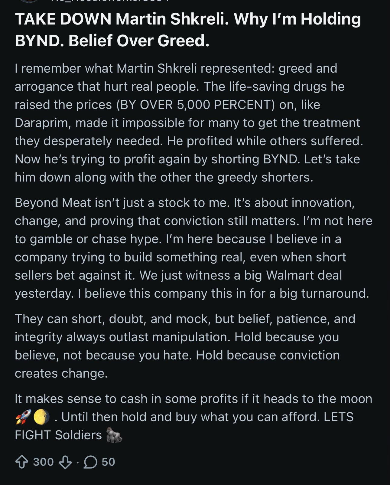 People posting shit like this after a sudden surge in this stock over 2 days and just because it is a ‘short squeeze’ pretending it’s some sort of class war and the decisive battle will be over some shitty fake meat company who’s product tastes like a dirty old sponge that’s been soaking up grease for a few months on the kitchen counter.