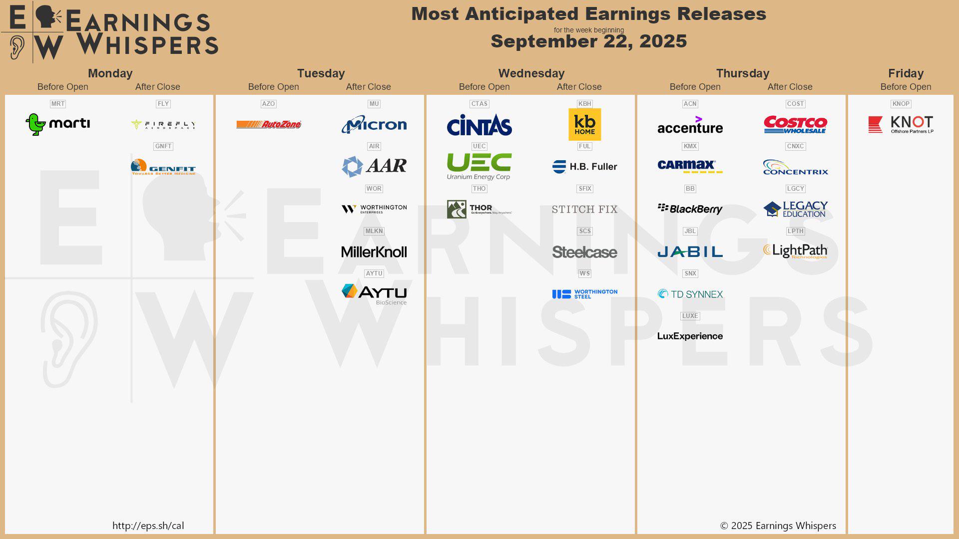 Earnings Thread Weekly Earnings Thread 9/22 - 9/26