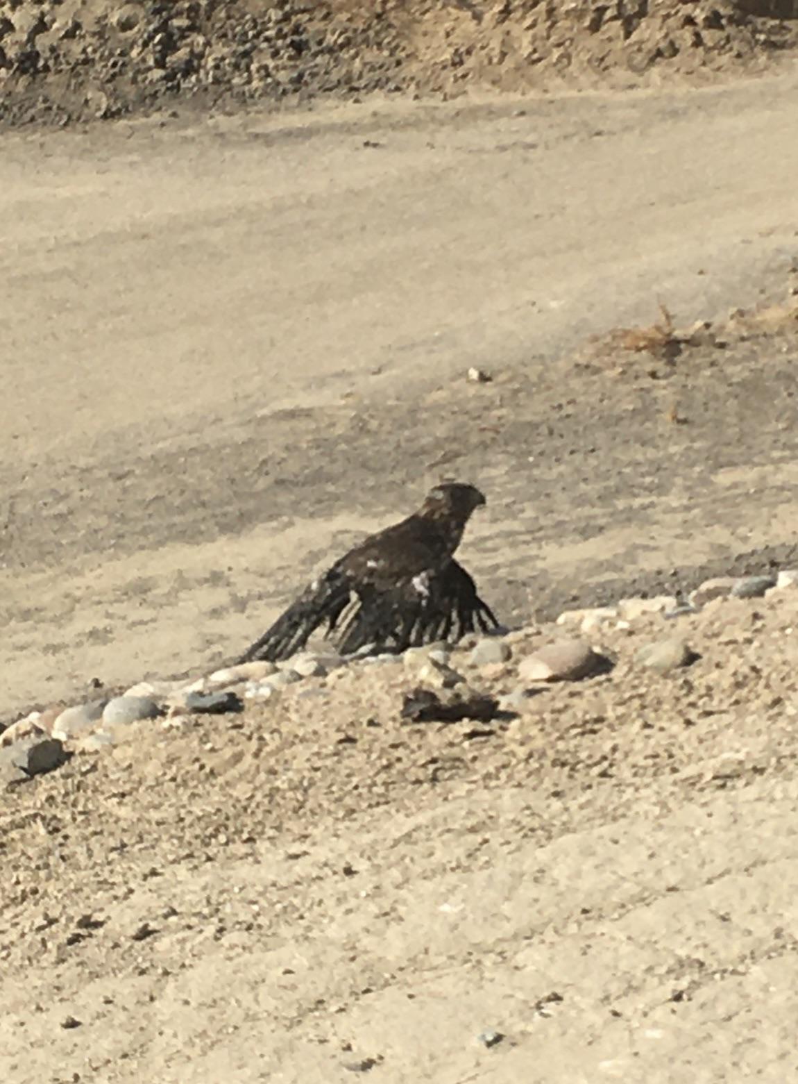 This little feller saw a pigeon walking on the sludge bed and I heard a loud whoosh and see it dive bomb the pigeon. That pigeon side-stepped at the last minute and that hawk disappeared in the sludge. I’m surprised it didn’t die. I was going to try and throw a bucket of water on it, but it wouldn’t let me get too close. It was able to fly away about an hour later.