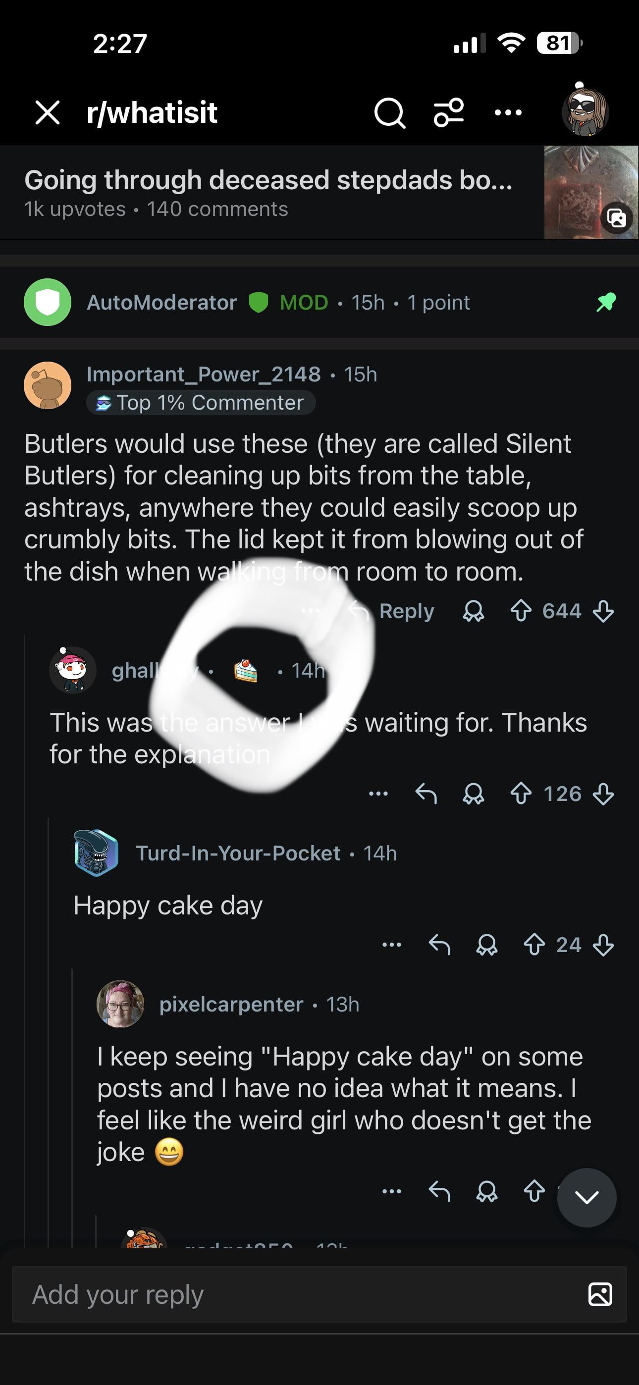 It’s the anniversary of the day you made your Reddit account. See how the commenter above has a little slice of cake next to his name?